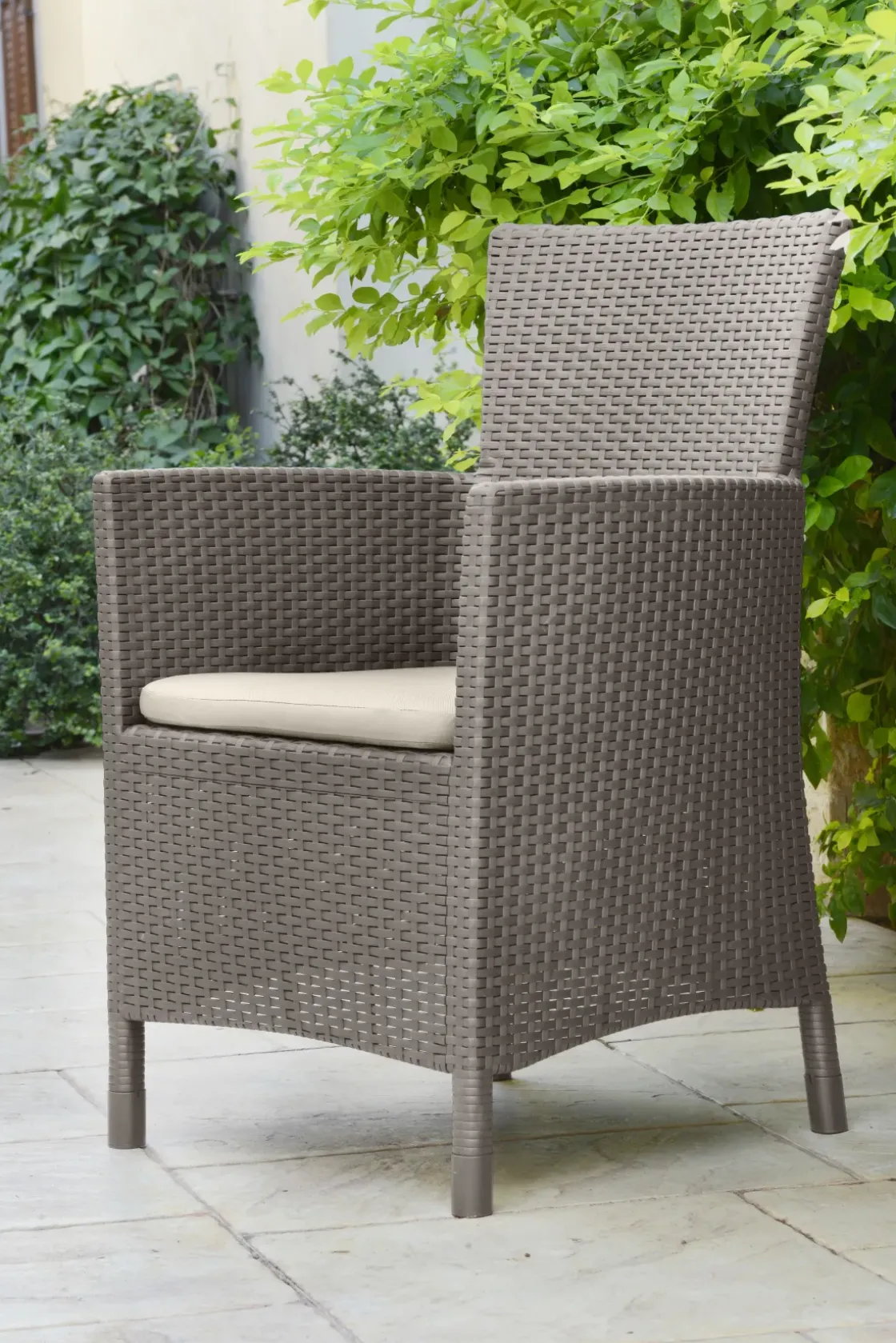 Geniet Van Het Weer Op De Iowa Tuinstoel Van Alibert. De Iowa Wicker Stoel In Cappuccino Van Allibert Is Alom Geliefd. Door Het Eigentijdse Design Kan Je De Armstoel Prima Combineren Met Veel Stijlen Tafels. Je Zet Deze Tuinstoel In Een Handomdraai Zelf In Elkaar. De Iowa Wordt Geleverd Met Een Kussen En Is Een Aanwinst Voor Elke Tuin. Daarnaast Kan Je De Stoel Het Gehele Jaar Door Buiten Laten Staan En Is De Iowa Onderhoudsvrij. Het Product Is Gemaakt Van Gerecycleerd Plastic!