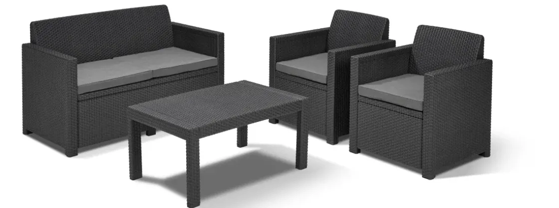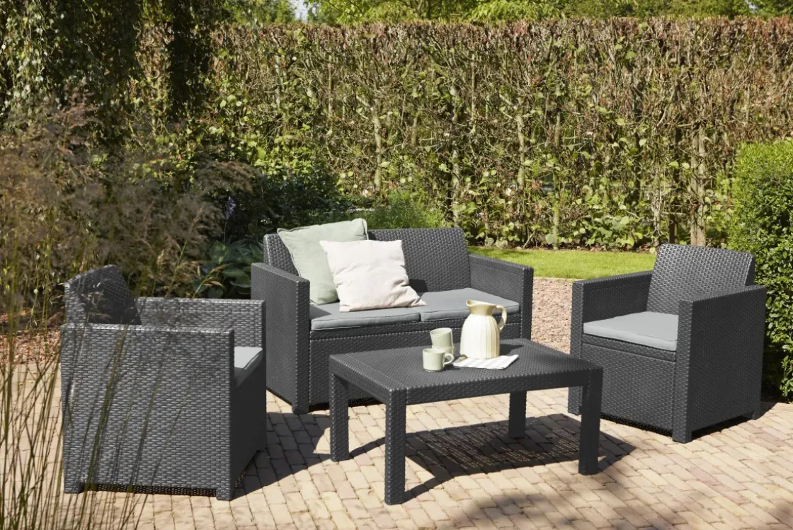 Met Deze Merano Loungeset Van Allibert Kun Je Genieten Van Lange Zomeravonden In Je Eigen Tuin. Het Platte Wicker Heeft Een Diepe Kleur. De Ergonomisch Gevormde Rugleuning En De Meegeleverde Kussens Zorgen Voor Optimaal Comfort Zodat Je Uren Lang Lekker Kunt Zitten.