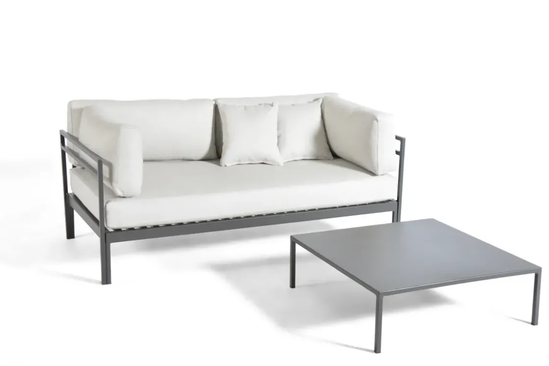 Deze Modulaire Tuinset Tango Van Arcane Is Uitgevoerd In Antracietkleurig Aluminium. De Set Bestaat Uit Een Modulaire 2-Persoonsbank En Een Salontafel. De Bank Is Voorzien Van Armleuningen En Afneembare Rugleuningen Die Een Grote Modulariteit Mogelijk Maken. Je Kunt Gemakkelijk Verschillende Tango-Sets Met Elkaar Combineren Voor Meer Zitplekken En Verschillende Configuraties Maken, Afhankelijk Van De Ruimte En Jouw Wensen.
