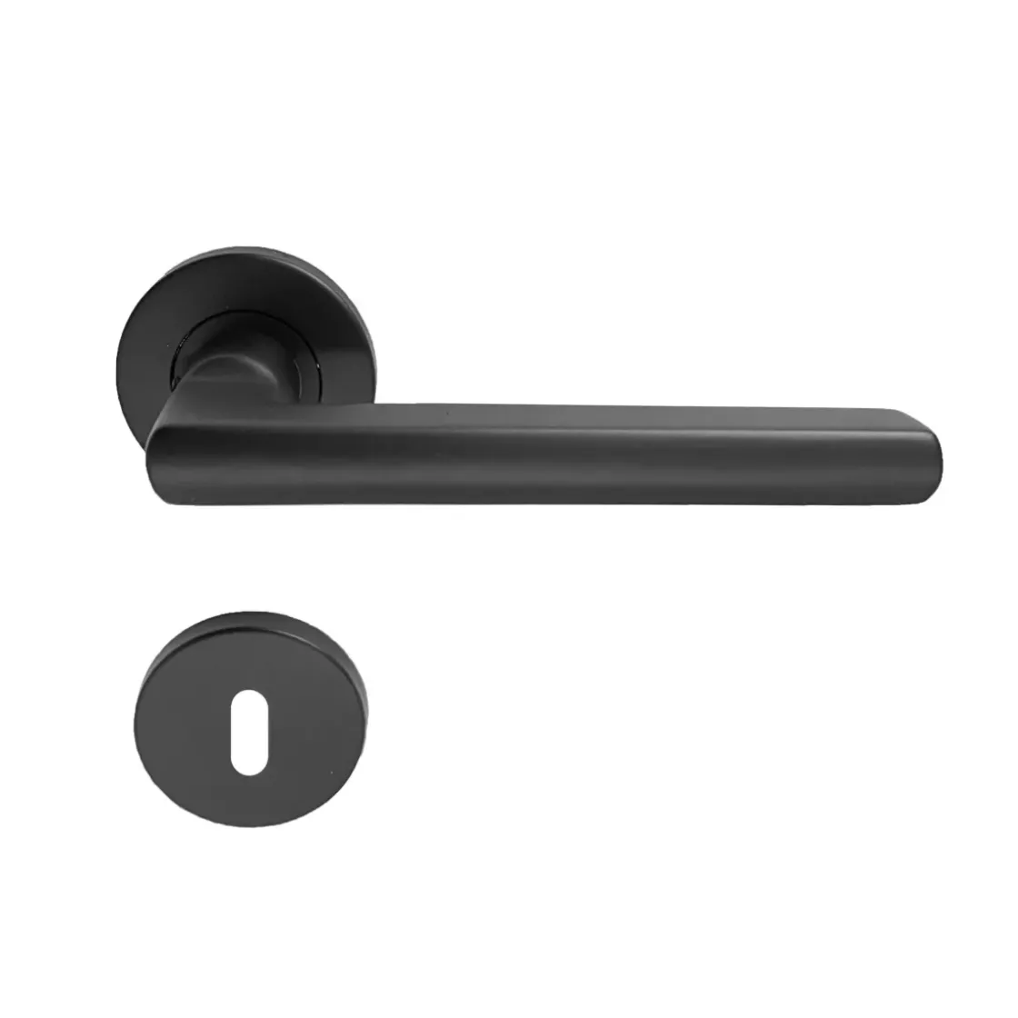Slank Vormgegeven Populaire Deurkruk, Gemaakt Van Rvs En Daarna Voorzien Van Een Mat Zwarte Finish. De Kruk Is Geveerd En Wordt Inclusief Montagemateriaal En Sleutelplaatjes Geleverd.