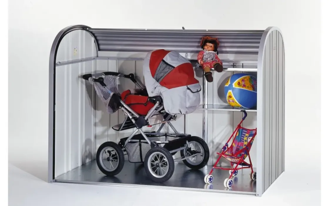 De Biohort Opbergbox Storemax 160 Is De Kleine Broer Van De Metalen Bergingen En Biedt Maximale Opbergruimte Als Je Weinig Ruimte In Je Tuin Hebt. Je Kunt De Box Gebruiken Als Garage Voor Je Grasmaaier Of Als Opslag Voor Afvalbakken Of Containers. Als Je De Tussenbodem Gebruikt Kun Je De Opbergruimte Zelfs Bijna Verdubbelen. Erg Praktisch Om Kleine Voorwerpen Zoals Tafelkleden Op Te Slaan Die Je Vaak Gebruikt. Om De Opbergbox Makkelijk Te Openen Is Hij Voorzien Van Een Tweedelig Openingssysteem Met Deuren Die Soepel Omhoog Glijden.