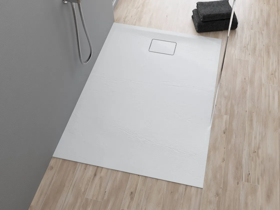 Minerale Schoonheid! Terreno Is Een Polybeton Douchebak Met Een Gestructureerd Steeneffect. De Lichte Reliefafwerking Biedt Een Onnavolgbare Natuurlijke Stijl En Een Aangenaam Contact. Verkrijgbaar In Drie Eigentijdse Kleuren: Kwartswit, Vuursteengrijs En Basaltzwart, De Afwerking Is Mat Voor Een Absoluut Design Effect. De Witte Douchebak Met Een Afmeting Van 140X90 Cm Is Gemaakt Van Polybeton En Heeft Een Antislip Oppervlak Waardoor Je Niet Uitglijdt.