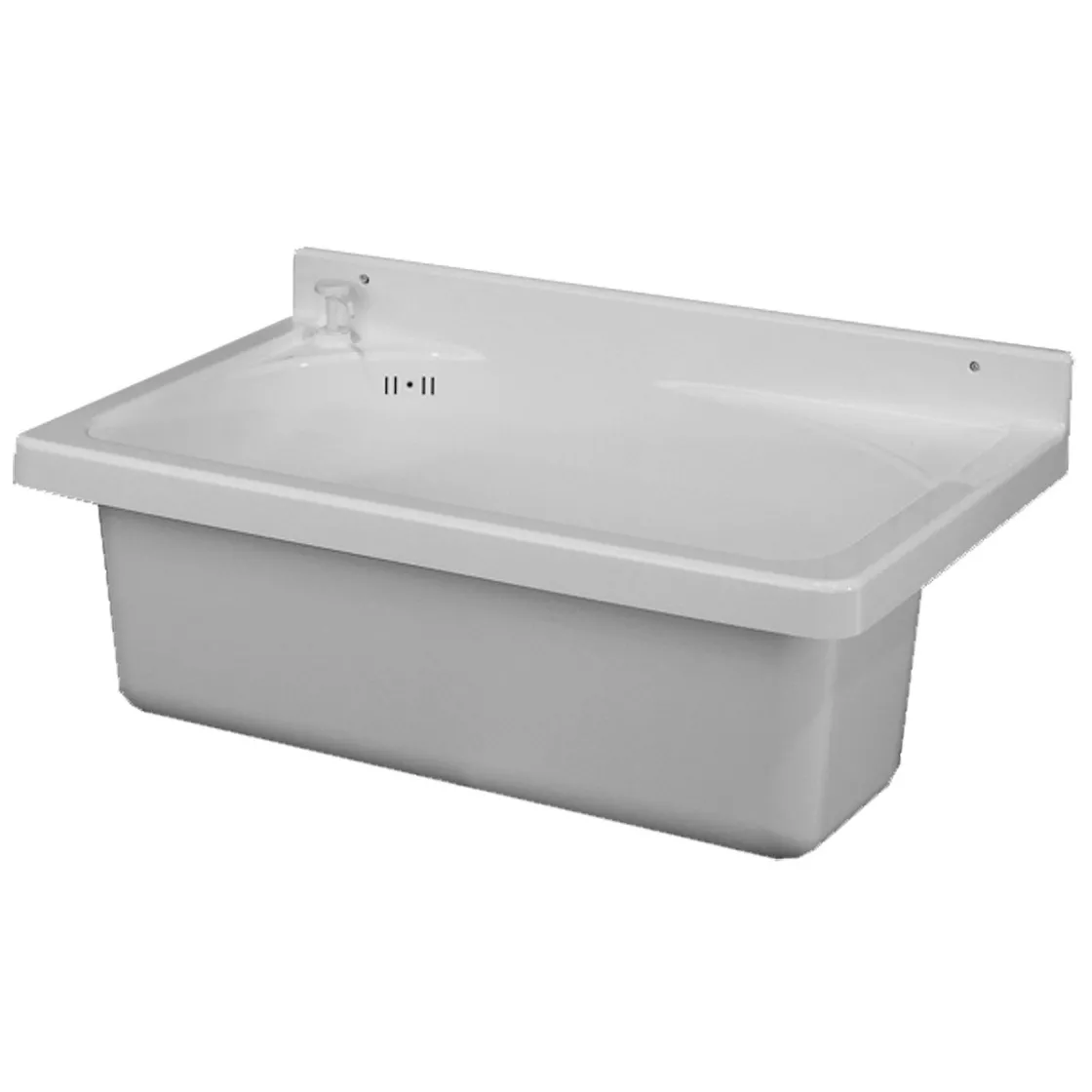 De Uitgietbak Ardeche Van Aquavive Is 54 Cm Breed, Gemaakt Van Kunststof En Voorzien Van Een Ingebouwde Zeepdispenser. De Uitgietbak Is Inclusief Afvoerplug Met Overloop En Bevestigingsset.