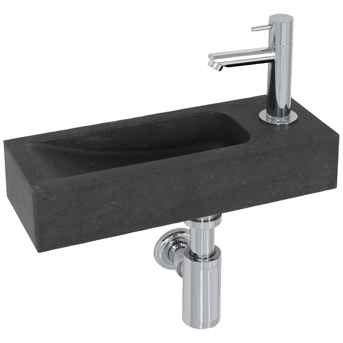Maak Je Toiletruimte Compleet Met De Aquazuro Fonteinset Natuursteen Platani. Inclusief Kraan, Sifon En Afvoerplug. Het Bevestigingsmateriaal Is Geschikt Voor Volle Betonwanden Met Een Minimale Dikte Van 10 Cm.