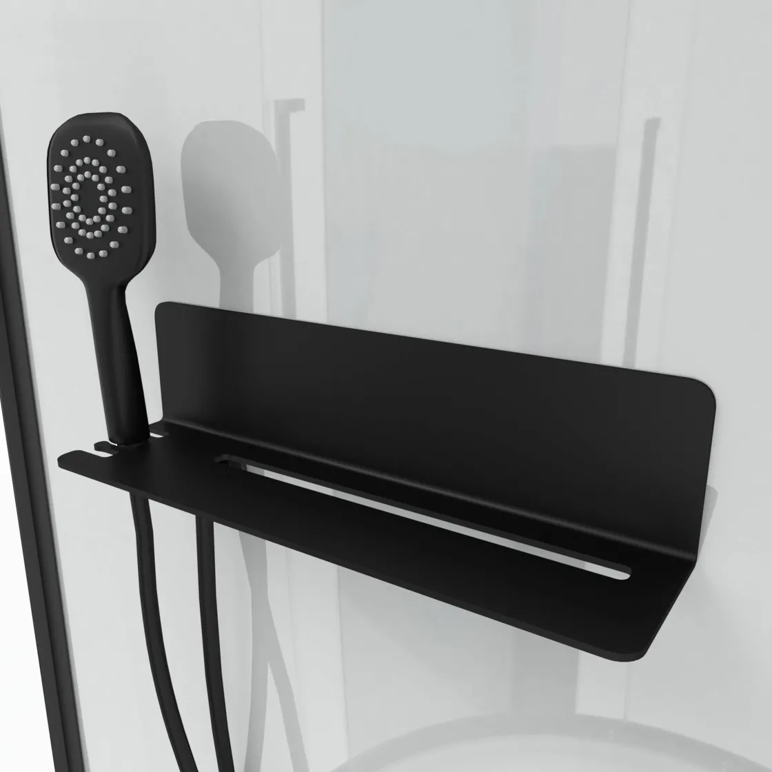 Het Bedieningspaneel Van Roestvrijstaal Heeft Een Mechanische Mixer En Een Antikalk Handdouche Met Een Mat Zwarte Pvc Doucheslang. En Dankzij Het Handige Metalen Zwarte Plankje Zijn Jouw Douchespullen Altijd Binnen Handbereik. Voor De Meest Ontspannen Douche-Ervaring Maak Je Gebruik Van De 41X28 Cm Hoofddouche Die Geintegreerd Is In Het Dak. De Wit Versterkte Acryl Douchebak Is Voorzien Van Een 90 Mm Hoge Afvoer.