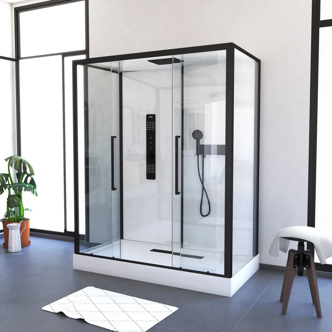 Brico Aurlane Douchecabine Indus2 Xxl 85X160X215Cm Rechthoekig Zwart/Wit New