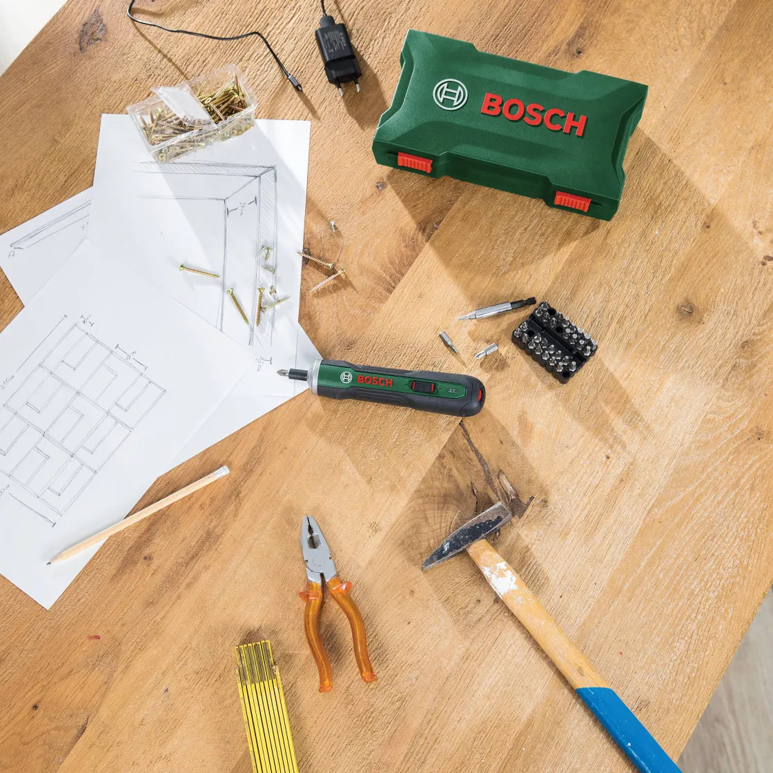 De Bosch Schroevendraaier Op Accu Pushdrive Is Een Compacte En Handige 3,6 Volt Schroevendraaier. Dankzij De Push&Go Functie, Begint De Pushdrive Automatisch Met Schroeven Na Lichte Druk Op De Schroef. De Pushdrive Beschikt Over Een Neutrale Stand, Deze Biedt De Mogelijkheid Om Manueel Te Schroeven. Daarnaast Beschikt De Machine Ook Over Een Koppelinstelling, Die De Machine Nog Eenvoudiger In Gebruik Maakt. De Accuschroevendraaier Pushdrive Ligt Heel Aangenaam In De Hand En Wordt Standaard Geleverd In Een Robuuste Koffer Met 32-Delige Bitset En Een Micro-Usb Oplader.
