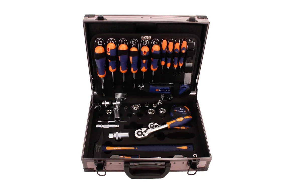 Deze 110 Delige Gereedschapskoffer Van Dexter Is Zeer Compleet En Bevat Al Het Belangrijkste Gereedschap Voor Elke Goede Doe-Het-Zelver, Perfect Voor Al Jouw Klussen. De Draagbare Koffer In Aktetasformaat Met Zijn Talrijke Opbergruimtes Is Zo Ingericht Dat Al Het Gereedschap Overzichtelijk Is Opgeborgen En Makkelijk Mee Te Nemen Is Naar Elke Klus. Alle Gereedschappen Zijn Uitgevoerd In Chroom-Vanadiumstaal.