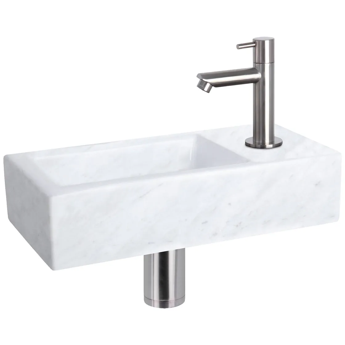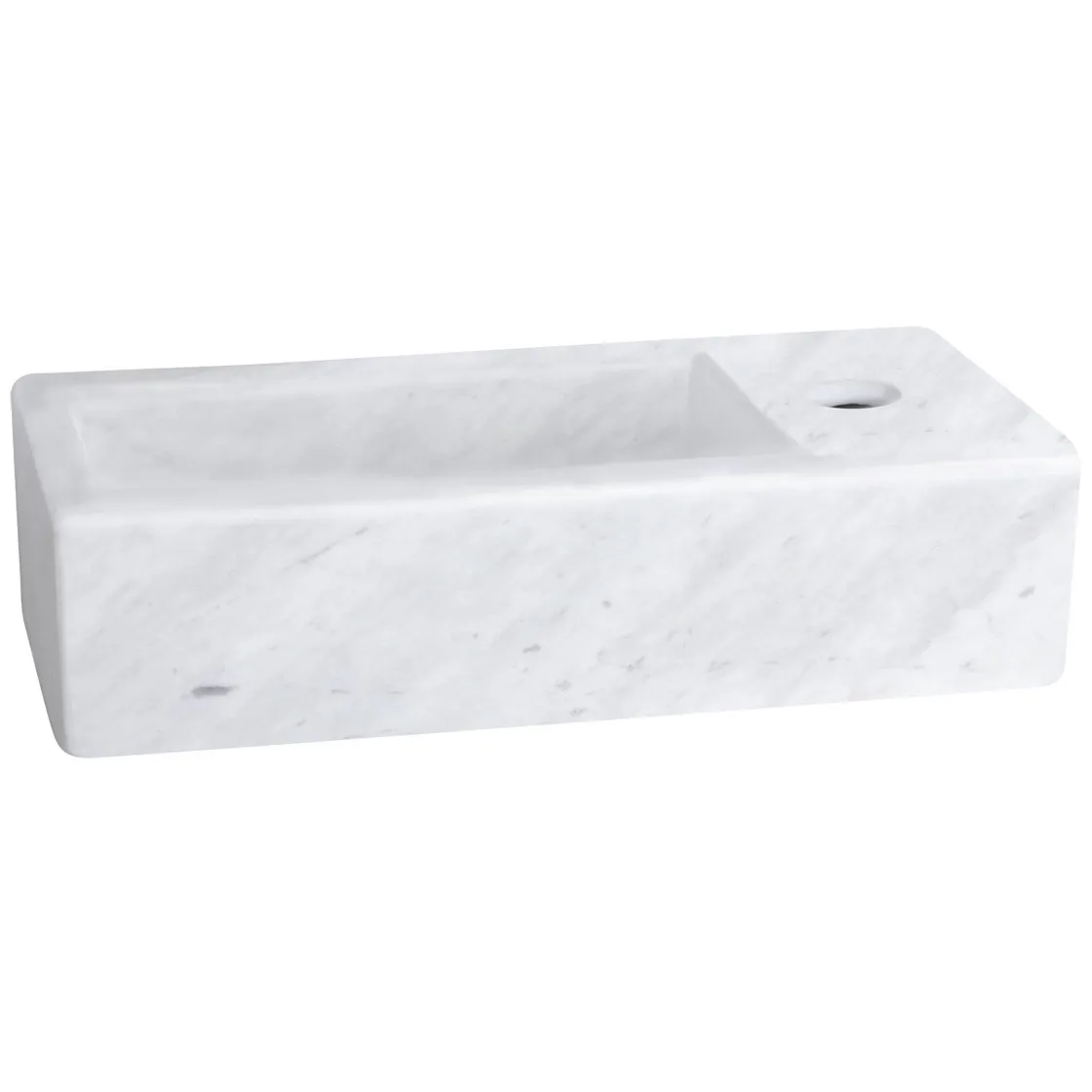 Het Elegante Wit Marmeren Wasbakje Helios Van Differnz Heeft Het Kraangat Aan De Rechterkant. Het Wit Marmer Is Een Natuurlijk Materiaal Wat Een Zeer Luxe Uitstraling Aan Jouw Toiletruimte Geeft.