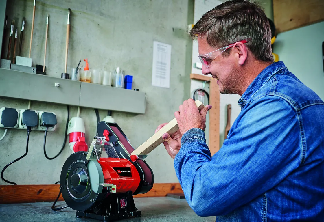 De Krachtige 240 W Motor In De Slijp- En Schuurmachine Maakt Het Mogelijk Om Uiteenlopende Schuur- En Slijpwerkzaamheden Uit Te Voeren. Gebruik De Schuurband Voor Het Schuren Van Hout, Of Kies Voor De Slijpsteen Om Metalen Voorwerpen Te Bewerken. Om Vonken Tegen Te Gaan Tijdens Het Uitvoeren Van Deze Klussen Heeft De Slijp- En Schuurmachine Een Verstelbaar Beschermglas Tegen Vonken. Ook De Zijdelings Gesloten Beschermkap Bevordert Je Veiligheid Tijdens Het Slijpen.