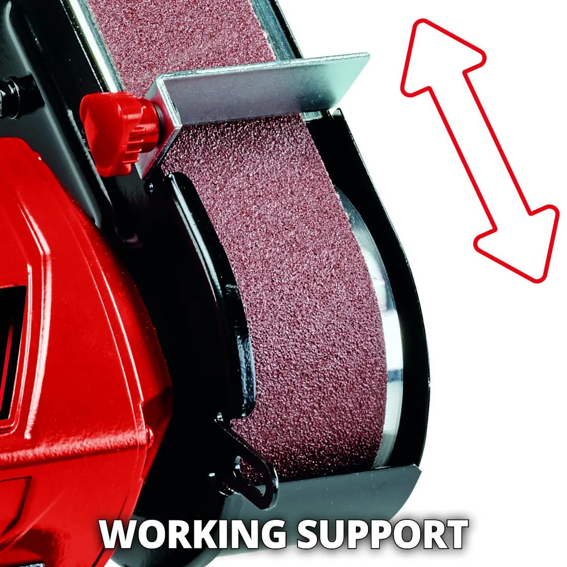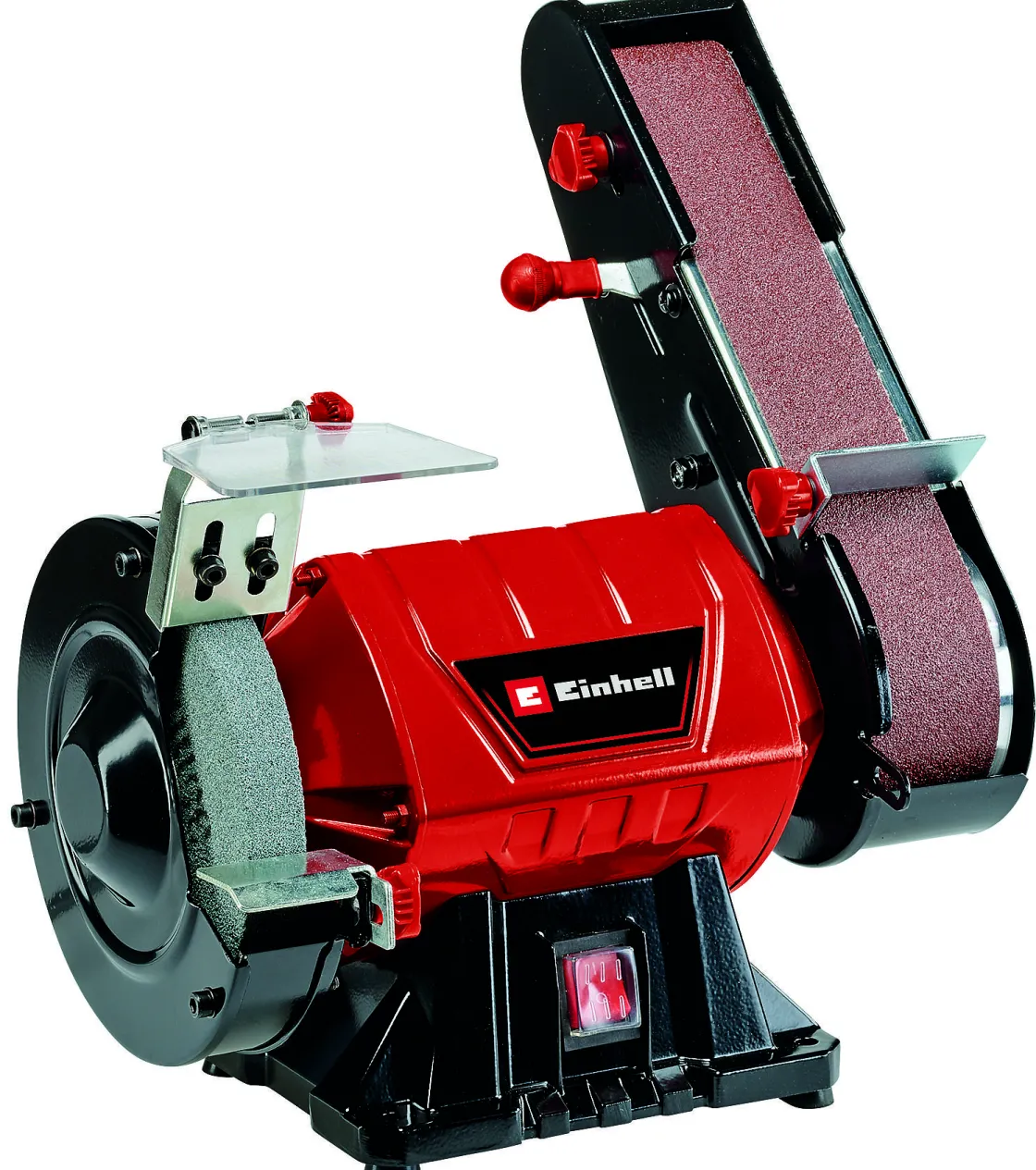 Zowel De Slijpsteen Als De Schuurband Kunnen Eenvoudig In De Juiste Hoek Worden Gekanteld, Voor Het Slijpen En Schuren Van Verschillende Voorwerpen. De Slijpsteen Heeft Een Diameter Van 150 Mm, De Schuurband Een Breedte Van 50 Mm. Kies Je Ervoor Om De Schuurband Verticaal Te Kantelen, Dan Heeft Deze Een Lengte Van 686 Mm.
