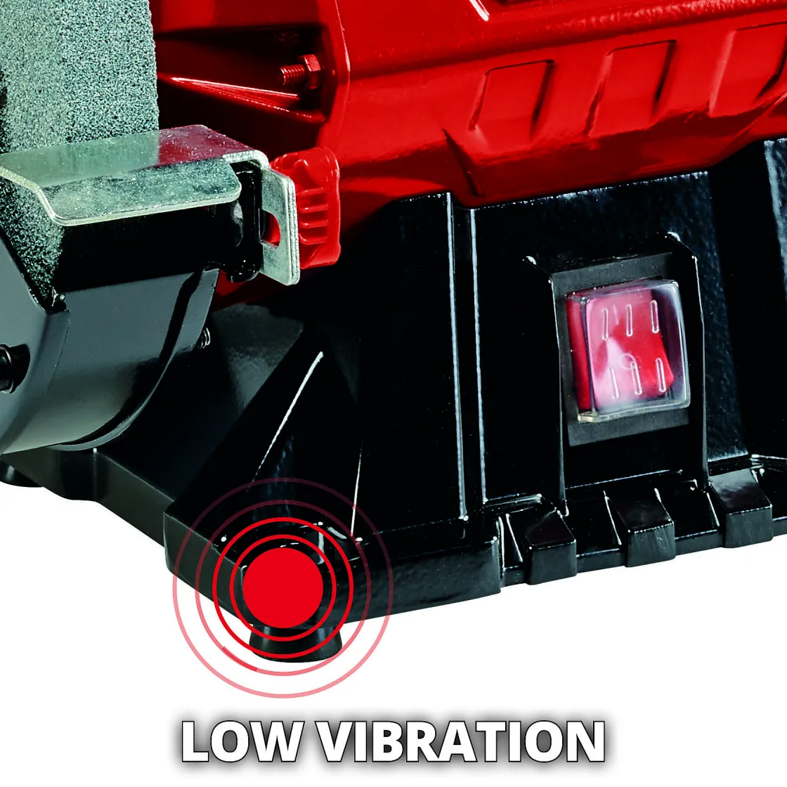 Om De Machine Stevig Vast Te Kunnen Zetten Op Bijvoorbeeld Een Werkbank, Hebben De Voeten Van Deze Slijp- En Schuurmachine Een Trillingsreducerende Werking. Dit Komt Door Het Feit Dat De Voeten Van De Machine Gemaakt Zijn Van Rubber. Ook Het Zware Metaal Van De Behuizing Van De Machine Bevordert De Stabiliteit Tijdens Het Klussen.