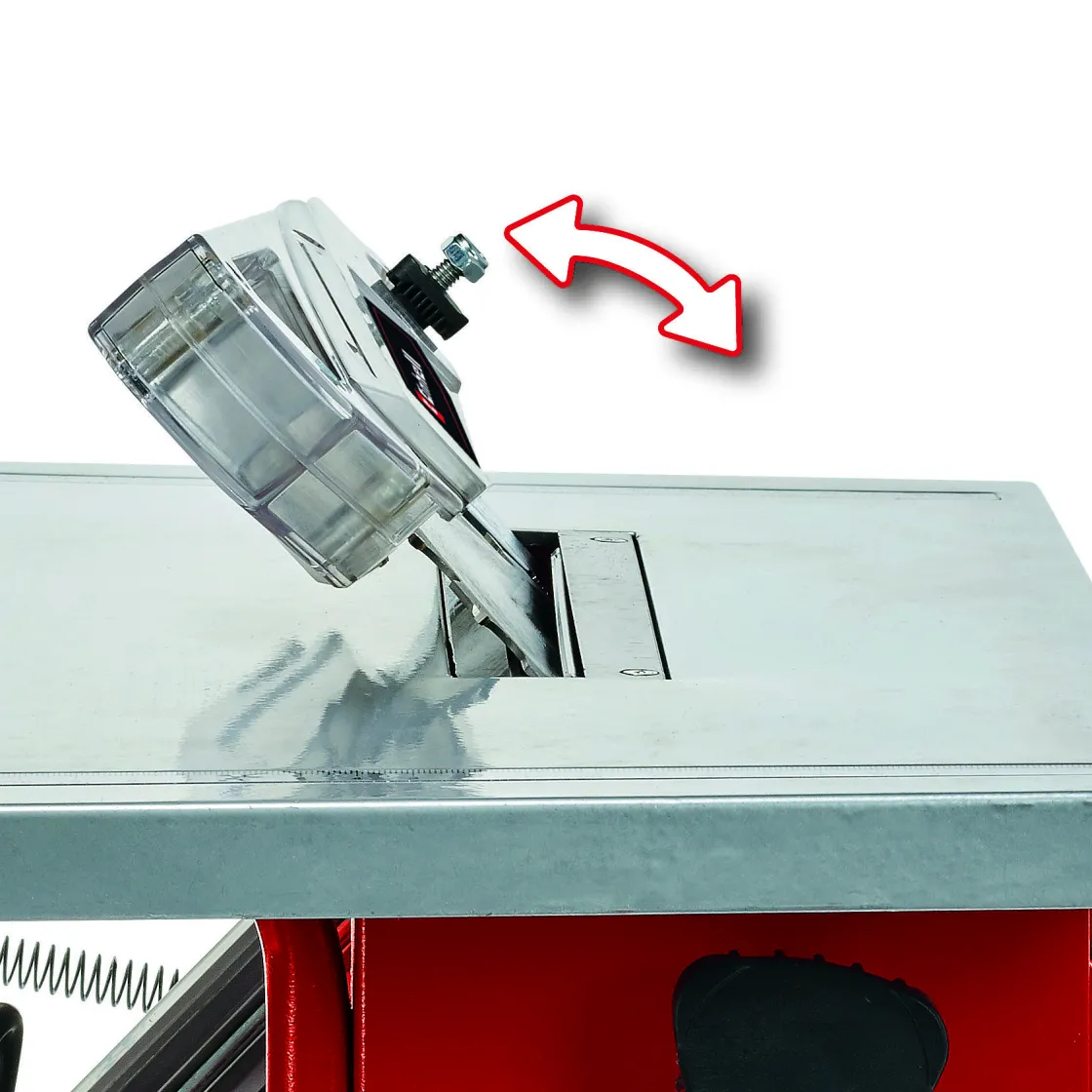 Het Zaagblad Kan Naar Links Worden Gekanteld Over Een Hoek Van 45° En Samen Met De Hoekaanslag (+/-60°) Is Het Maken Van Eenvoudige Versteksneden Mogelijk. De Stroomkabel Kan Eenvoudig En Veilig Worden Opgeborgen Op De Geintegreerde Kabelhouder Op De Tafelzaag Wanneer Deze Niet Wordt Gebruikt.