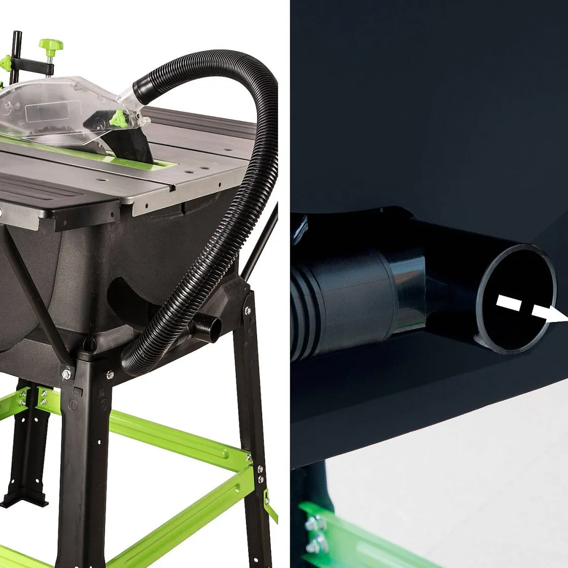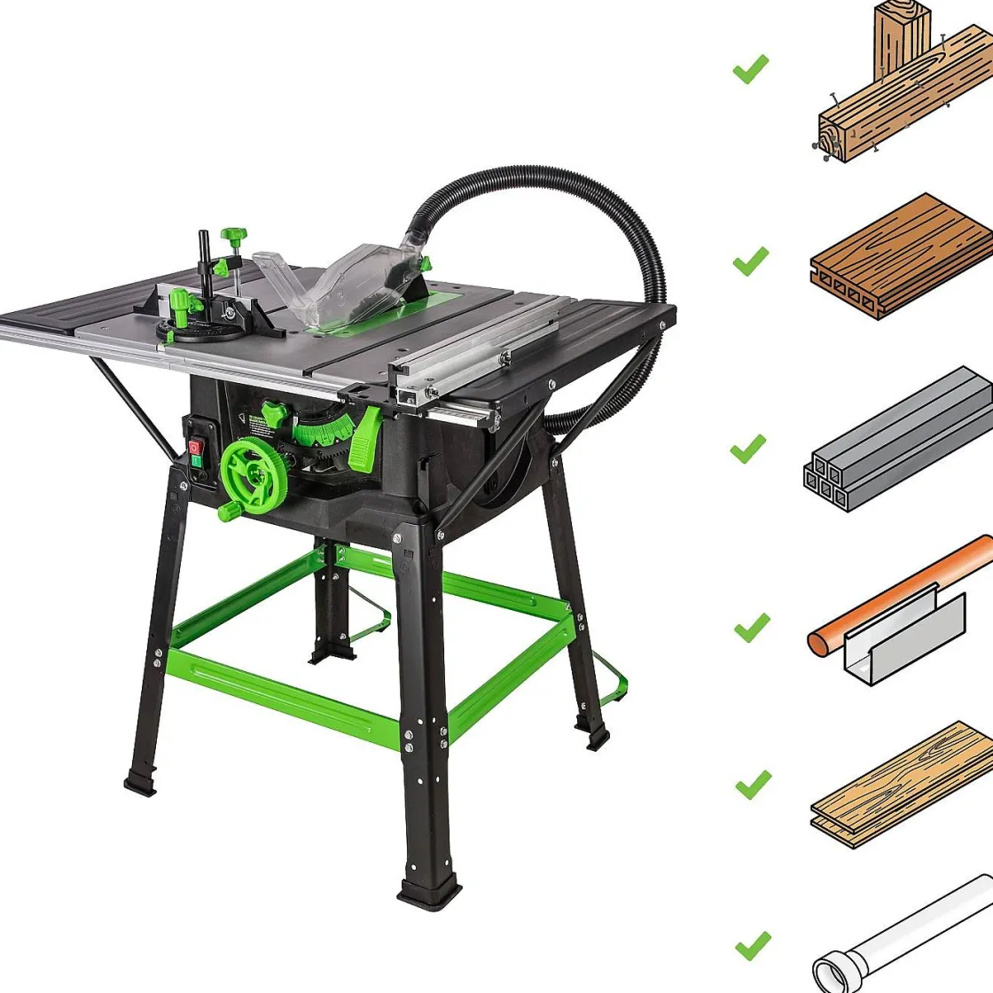 Deze Zaagtafel Van Evolution Beschikt Over Een Gepatenteerde Snijtechnologie Voor Meerdere Materialen. De Fury5-S 255 Mm Evolution Tafelzaag Zaagt Hout, Hout Met Spijkers, Zacht Staal, Aluminium, Koper, Pvc … Met Hetzelfde Mes. De Snede Is Snel, Schoon En Nauwkeurig Op Alle Materialen En Laat Een Opmerkelijke Afwerking Achter. Zijn Snijdiepte Bedraagt Tot 85 Mm (90°) En 65 Mm (45°). Je Kan Tevens Ook Schuin Snijden Van 0° Tot 45° En 60° – 60°. Met De Afzuigpoort Boven En Onder Het Mes Blijft Je Werkomgeving Proper. Tot Slot Kan Je Eenvoudig En Snel Wisselen Van Messen.