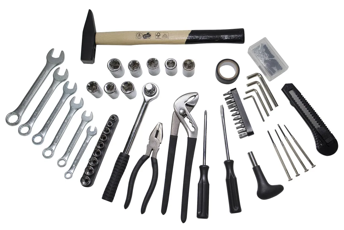 Inhoud Van De Koffer: 1 Waterpomptang, 1 Combinatietang, 2 Schroevendraaiers, 4 Precisieschroevendraaiers, 4 Inbussleutels, 1 Handgreep, Een Ratel, 17 Doppen, 6 Steek/Ringsleutel, 10 Bits, Een Rol Isolatietape, Een Hamer, Een Breekmes En Een Doosje Schroeven En Pluggen.