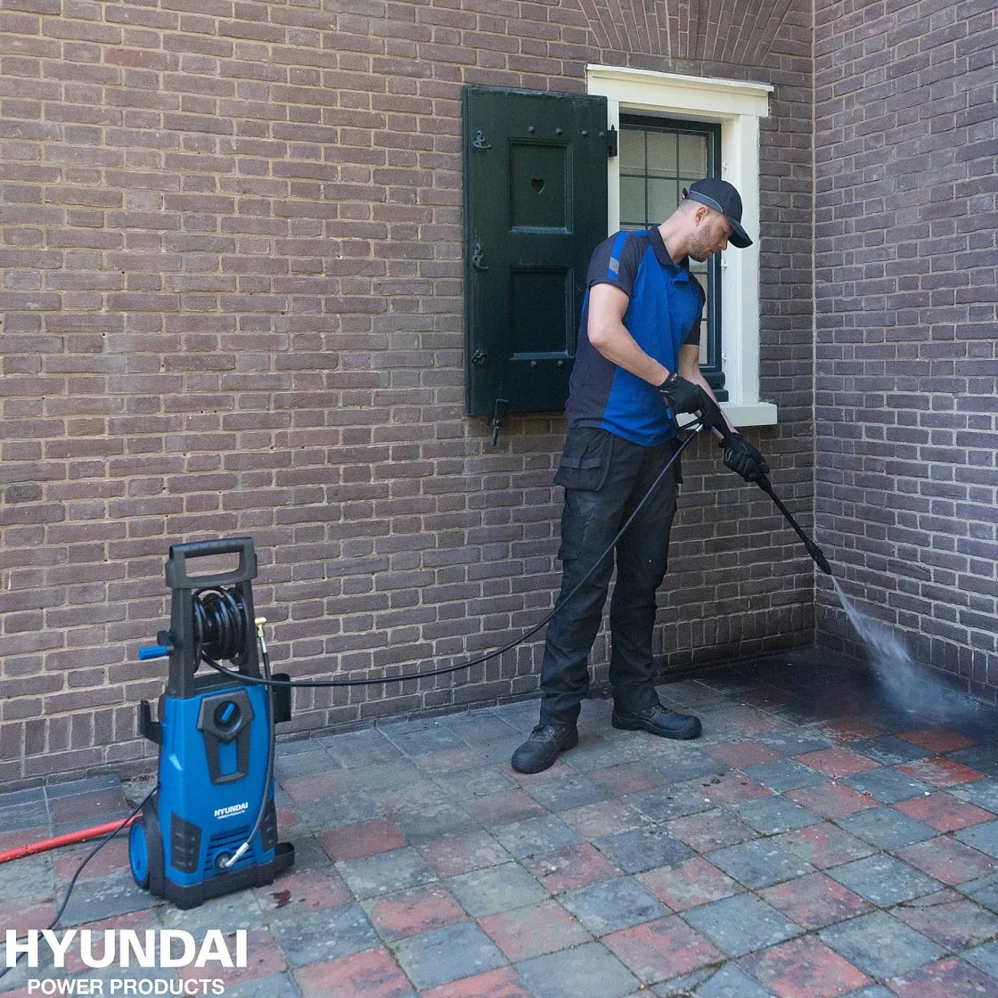 De Krachtige Hyundai Heeft Een Max Vermogen Van 2200W En Is Ideaal Voor Het Reinigen Van Vele Oppervlakken Buitenshuis. Hij Is Stevig En Robuust En Is Met Zijn Maximaal 180 Bar En Wateropbrengst Van 330 Liter/Uur Perfect Voor Het Verwijderen Van Hardnekkig Vuil Van Paden, Balkons, Terrassen, Schuttingen, Metselwerk, Tuinmeubelen, Gereedschap, Fietsen, Motoren, Caravans En Auto’S.