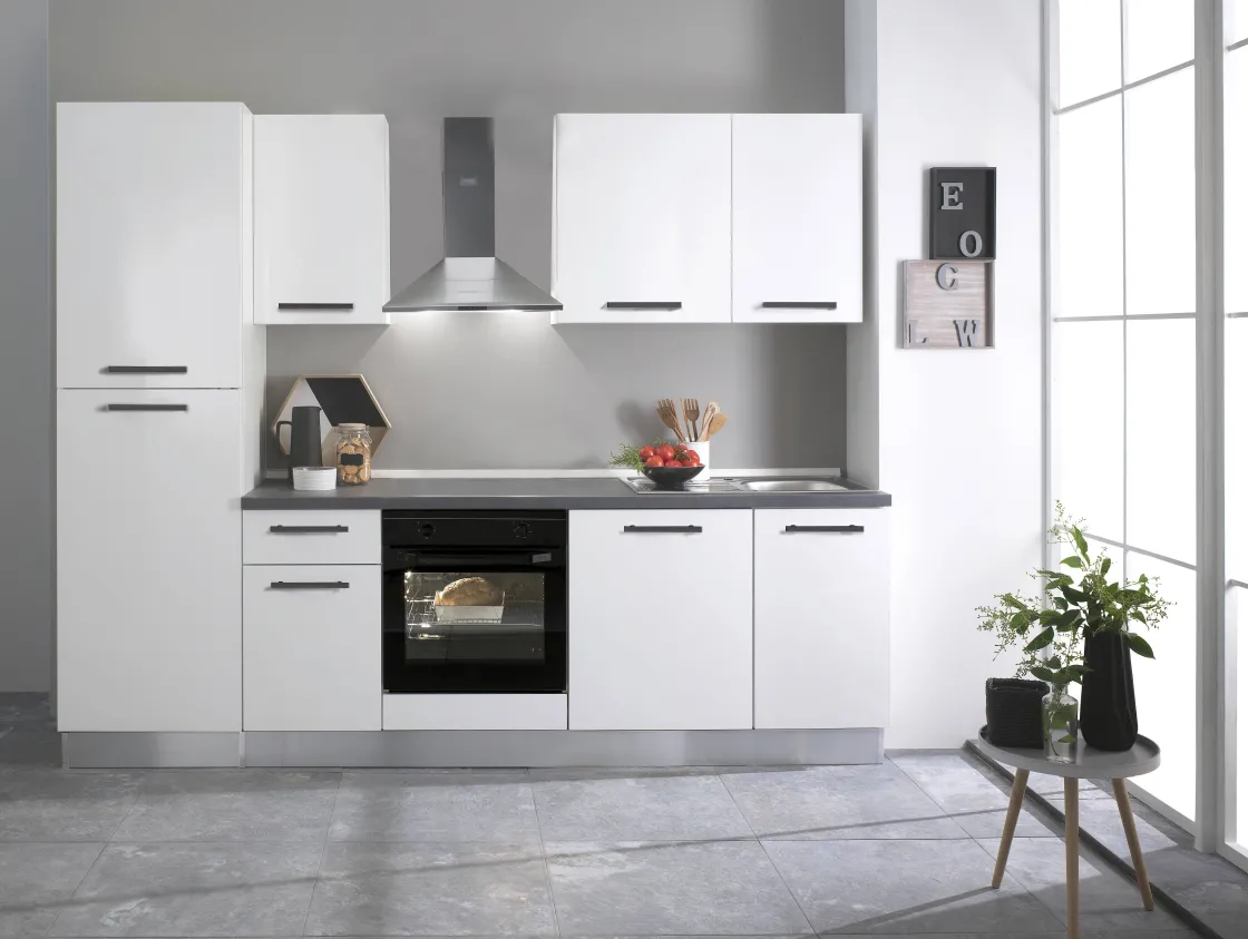 Of Het Nu Voor Het Eerste Appartement, Een Vrijstaande Woning Of Voor Het Kantoor Is, Het Keukenblok Giorgia Van 270 Cm Maakt Altijd Indruk Met Het Italiaanse Design, Verschillende Functies En De Vooraf Geintegreerde Apparatuur.