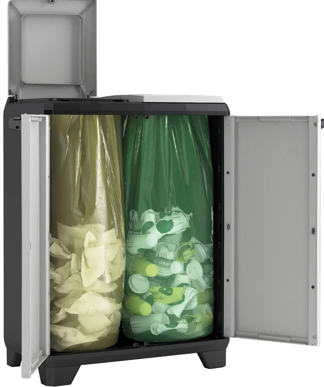 De Split Premium Kast Is Ontworpen Voor Afvalinzameling. De Premium-Versie Is Uitgerust Met Een Opening Met Een Druk Op De Knop, Verstelbare Poten En Een Meegeleverde Labelset.
