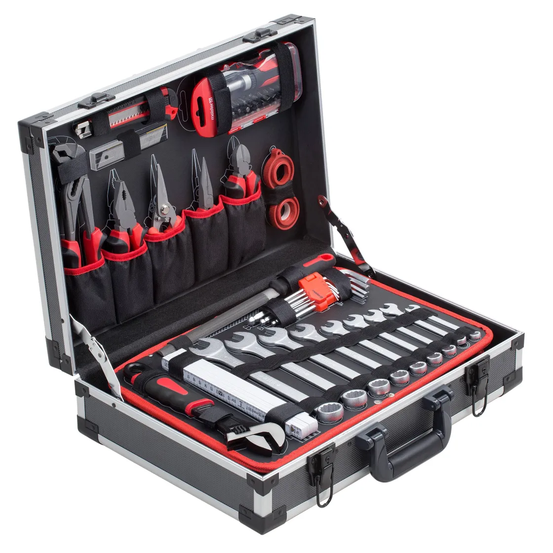 Meister Robuuste Koffer Van Aluminium, Hoge Functionaliteit, Eenvoudig Terugplaatsen Van Het Gereedschap Door Voorgedrukte Contouren, Praktisch Om Mee Te Nemen Onderweg, Alles Bij De Hand – Elk Gereedschap Heeft Zijn Vaste Plaats, Overzichtelijk Gerangschikt, Voor De Professional En Doe-Het-Zelver, Testwinnaar “Selbst Ist Der Mann” (12/18)
