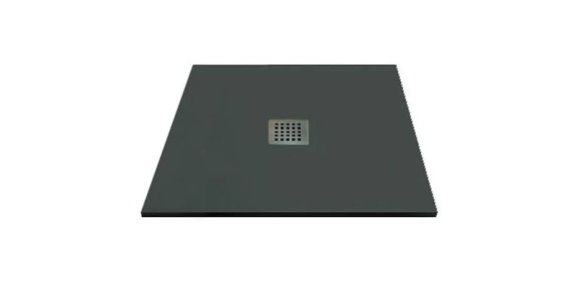 De Nola 2 Biedt Een Breed Scala Aan Extra Platte Douchebakken, Met Een Imitatiesteenstructuur. Deze Extra Platte Douchebak Van Hars, Afmeting 90X90Cm, Antracietgrijs, Maakt Een Gemakkelijke Toegang Tot De Douche Mogelijk (Dikte 3Cm) En Is Anti-Slip Klasse Iii. Hij Is Ook Antibacterieel En Heeft Een Afvoergat Met Een Diameter Van 90 Mm, Beschermd Door Een Vierkant Roestvrijstalen Afvoerrooster.