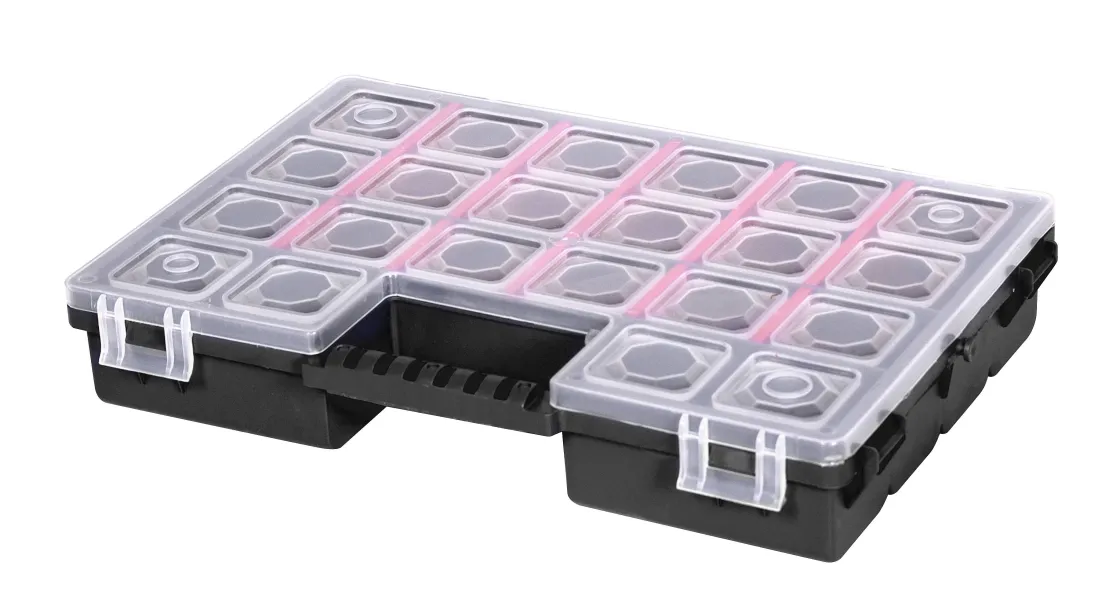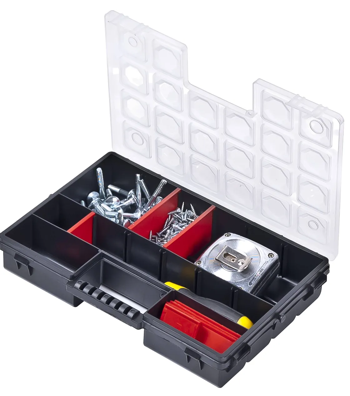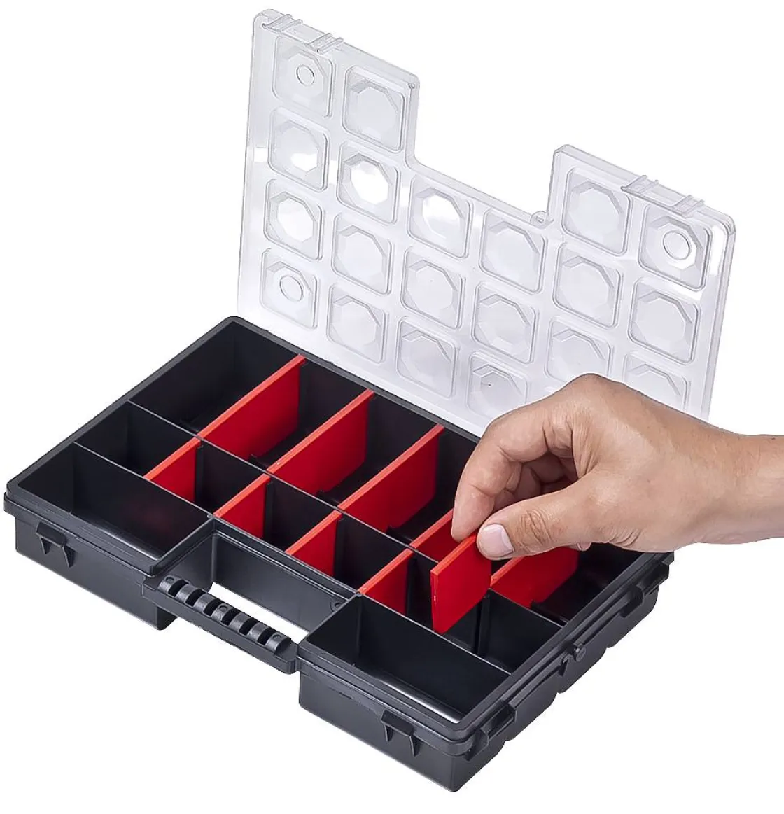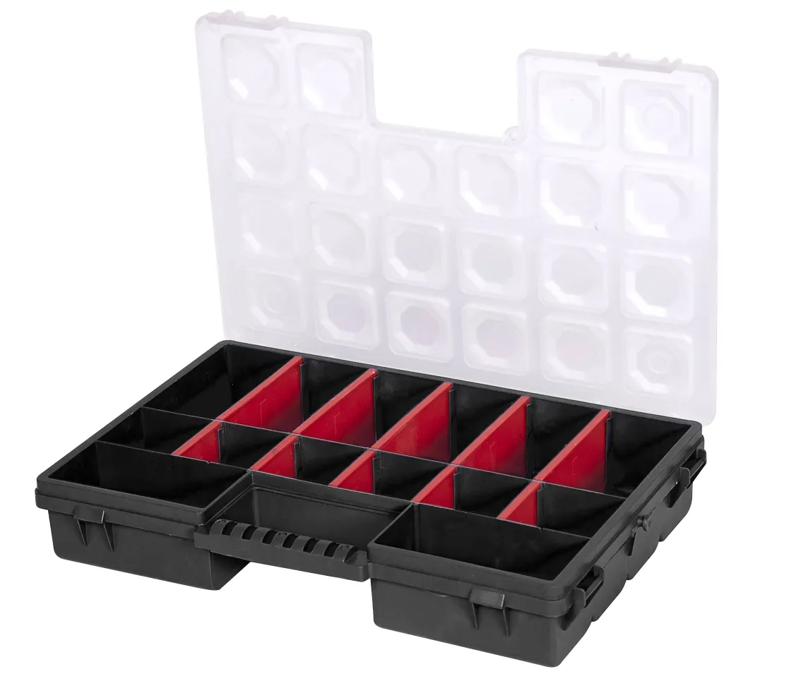 Deze Gereedschapskoffer Van Patrol Is Uitgerust Met Een Transparant Deksel, Stevige Sluitingen En Verstelbare Verdelers. Je Kunt Tot Maximaal 14 Opslag Compartimenten Creeren Met Zijn 10 Verstelbare Verdelers. Met Zijn Handige Handvat Kan Je De Koffer Overal Gemakkelijk Meenemen.