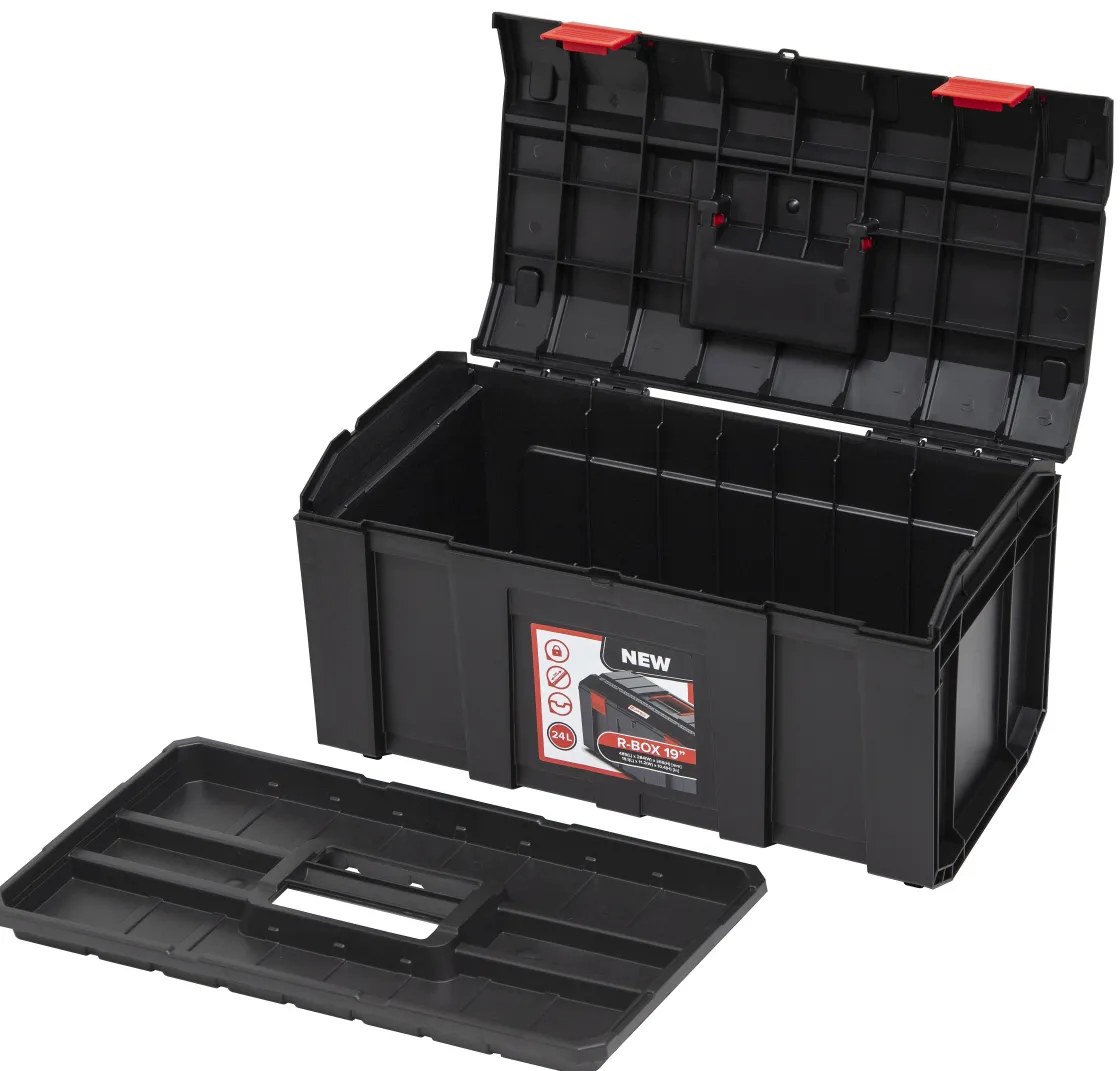De Qbrick Regular R-Box 19″+ 16″ Bestaat Uit Een Set Van 2 Gereedschapskoffers. Ideaal Om Al Je Tools En Accessoires In Op Te Bergen En Overal Mee Te Nemen. De Gereedschapskoffers Beschikken Over Een Geleidesteun Voor Zaagwerk, Een Hangslotbeugel En Verstevigingsribbenen Clips Ter Bescherming Van Al Je Toebehoren. Door Het Ergonomische Handvat Neem Je Gemakkelijk Al Je Gereedschap Mee.