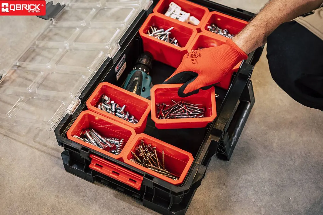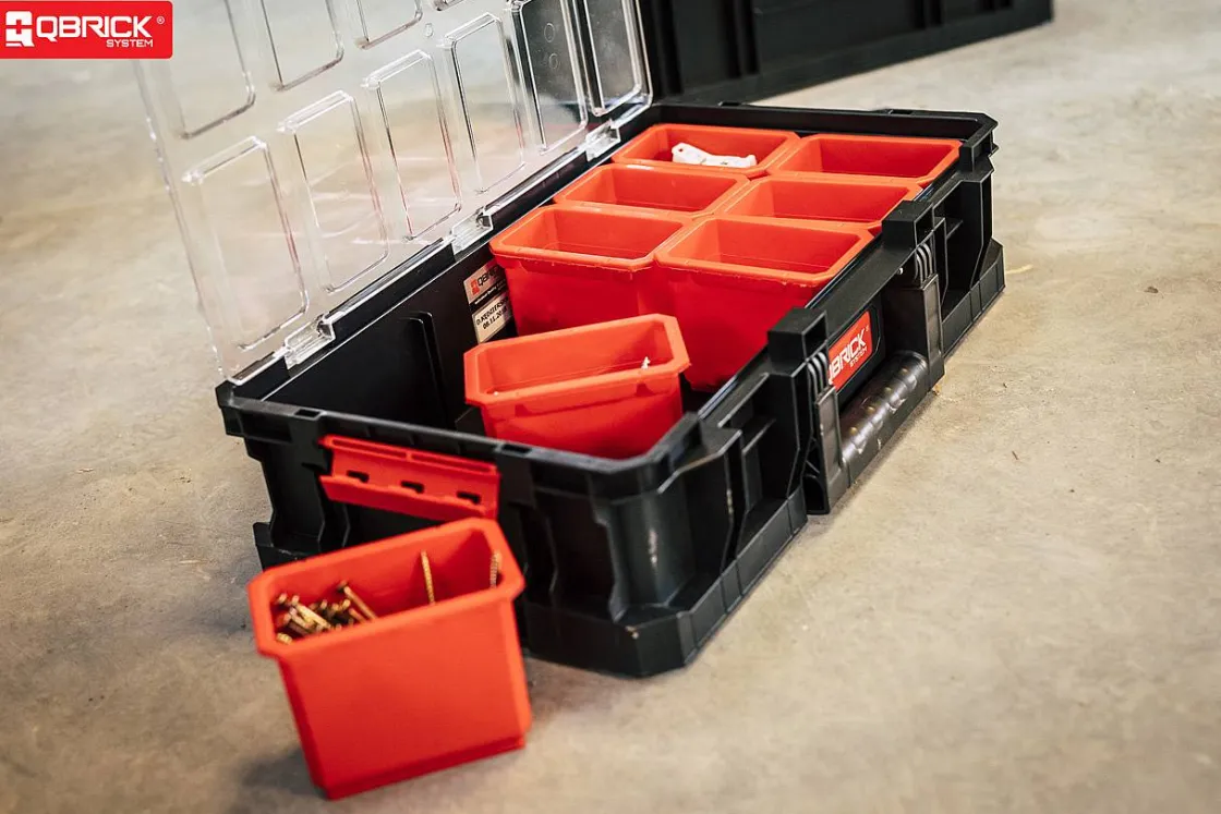 Deze Organizer Van Qbrick Heeft Een Modulaire Constructie Met De Mogelijkheid Om Hem Te Combineren Met Andere Gereedschapskoffers Van De System Two Serie. De Koffer Beschikt Over 9 Grote Uitneembare Bakken, Een Polycarbonaat Deksel, Polyamide Zijvergrendelingen En Connectoren. Tot Slot Kan Je Met De Connectoren Twee Gereedschapsoffers Van Dezelfde Grootte Verbinden.