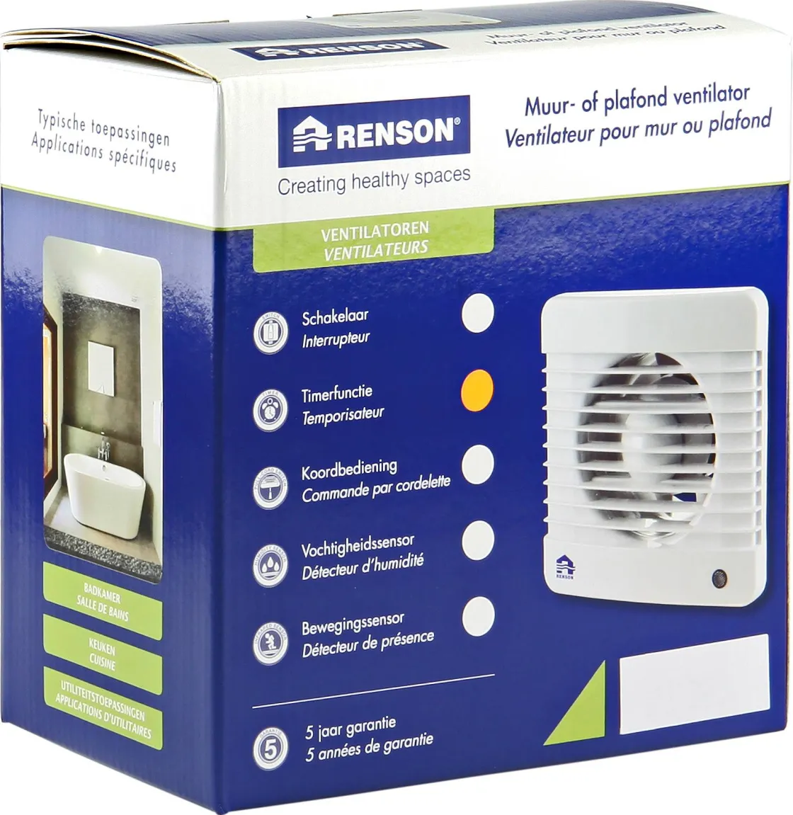 De Inbouwventilator 7202T Van Renson Met Een Diameter Van 125 Mm Is Geschikt Voor Het Ventileren Van Ruimtes Tot 15M². Je Monteert Deze Design Ventilator Met Wit Front Eenvoudig In De Wand Van Een Kamer. Dankzij De Timerfunctie Stel Je De Design Ventilator Zelf In Waardoor Deze Automatisch Enige Tijd Blijft Draaien En Na De Ingestelde Tijd Automatisch Weer Stopt.