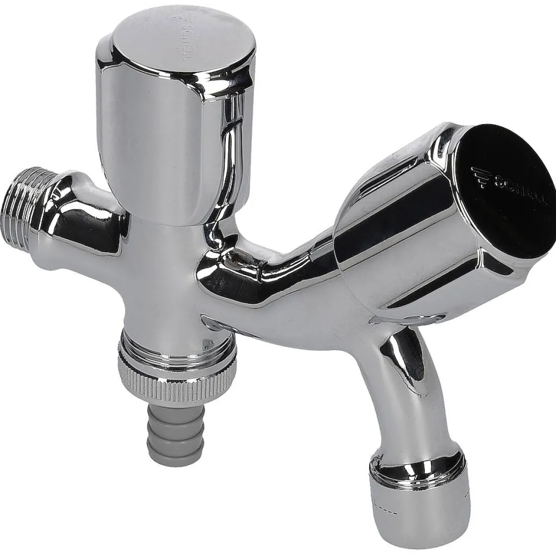 Brico Schell Tapkraan Met Dubbele Uitloop En Slangkoppeling 1/2″ Buitendraad Chroom Outlet
