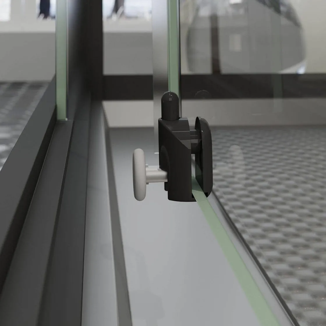 – Ruimtebesparend: Douchedeuren Verdwijnen Achter De Vaste Glaselementen, De Schuifdeur Druppelt Niet Op De Badvloer