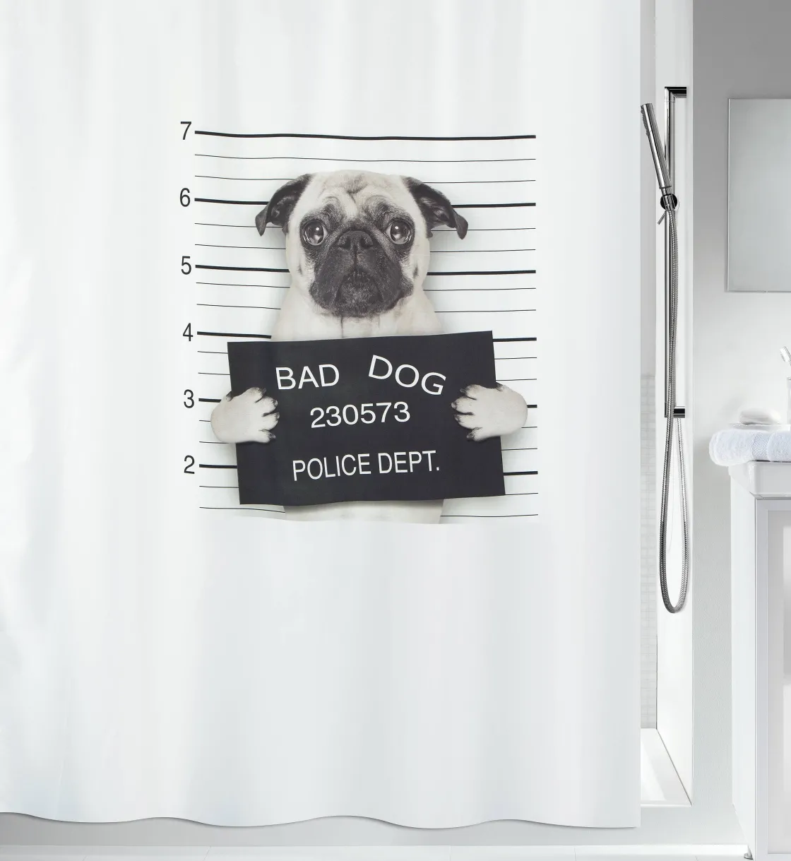 Het Douchegordijn Bad Dog Van Spirella Is Een Stoere Aanvulling Voor In De Badkamer. Het Gordijn Is 180 Cm Breed, Gemaakt Van Polyester En Voorzien Van Gaten Voor De Doucheringen. We Raden Je Aan Om Het Gordijn In De Wasmachine Te Wassen Op 40°C.