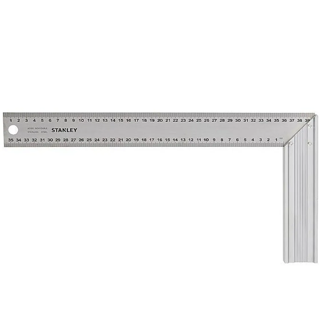 Stanley Winkelhaak 400X200Mm Winkelhaak Fotografisch Geetste Mm-Verdeling Op Roestvrij Staal, Duidelijk Zichtbaar Geribde Aluminium Balk Met 3 Klinknagels Bevestigd Aan Winkelhaak Voor Stevigheid En Nauwkeurigheid Balk Is Afgekant Om Hoeken Van 90° En 45° Te Maken Mm-Verdeling Aan Beide Zijden