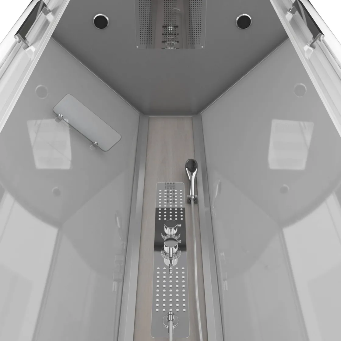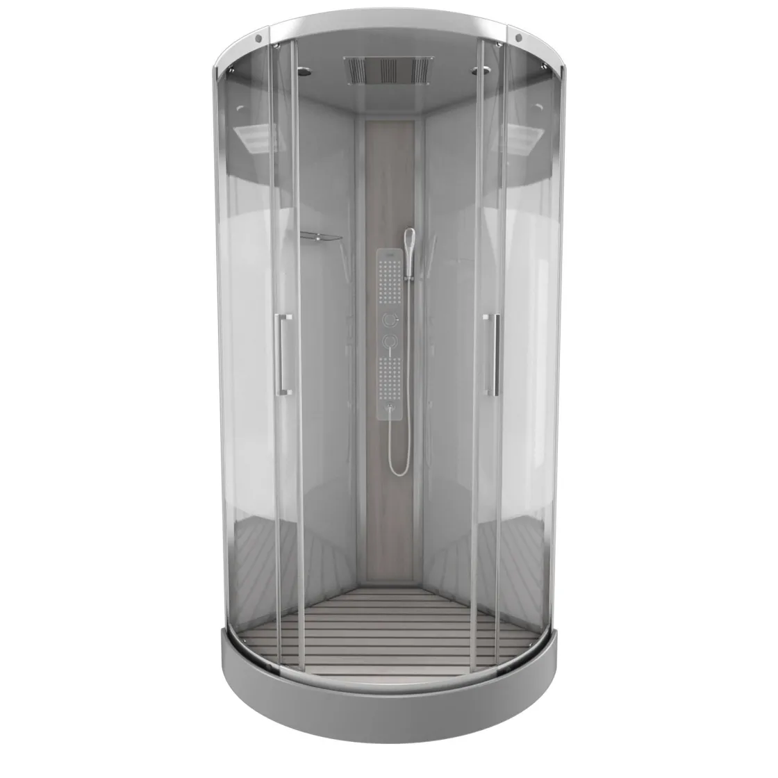 Brico Technische Eigenschappen:85X185X215Cmbenodigde Hoogte Voor Installatie 230Cmmetaalgrijs Gelakte Aluminium Structuuromkeerbare Schuifdeur In 6 Mm Van Gehard Glasachterwand Van Grijs Gehard Glas Van 5 Mmcomposiet Houten Kolom Met Roestvrijstalen Plaatvoorwanden En Zijkanten Met Gematteerde Bandenversterkt Grijs Acryl Dak En Douchebakmagnetische Sluitingsiliconenvrije Montagetoebehoren: Rvs Regendouchekopanti-Kalksteen Multi-Jet Roestvrijstalen Hydromassagepaneelanti-Kalksteen Handdouchepvc-Slang Met Metallic Effectglazen Plankenverchroomd Roestvrijstalen Handvatmechanische Mengkraan90 Mm Afvoer Met Hoog Debietcomposiet Houten Roostergeleverd Met Aansluitslangen Best