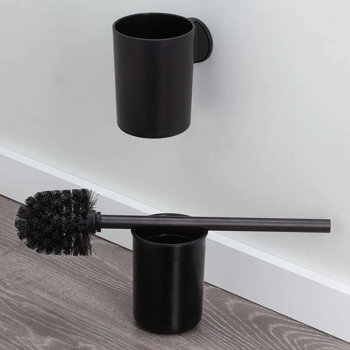 De Toiletborstel Met Houder Uit De Tune Serie Is Uitgevoerd In De Kleur Mat Zwart Gecombineerd Met Geborstelde Zwart Metalen Accenten. De Toiletborstel Met Houder Is Voorzien Van Een Krachtige Dubbelzijdige 3M Tape Waardoor Montage Op Iedere Gladde, Stevige Ondergrond Zeer Eenvoudig Is. Mocht De Ondergrond Niet Geschikt Zijn Voor De Toepassing Van De Dubbelzijdige Tape, Dan Bestaat De Mogelijkheid De Toiletborstel Met Houder Aan De Wand Te Monteren Met Schroeven En Pluggen. De Tune Serie Bevat Tevens Een Groot Aantal Aanvullende Accessoires Voor De Badkamer En Toiletruimte In Dezelfde Stijl.
