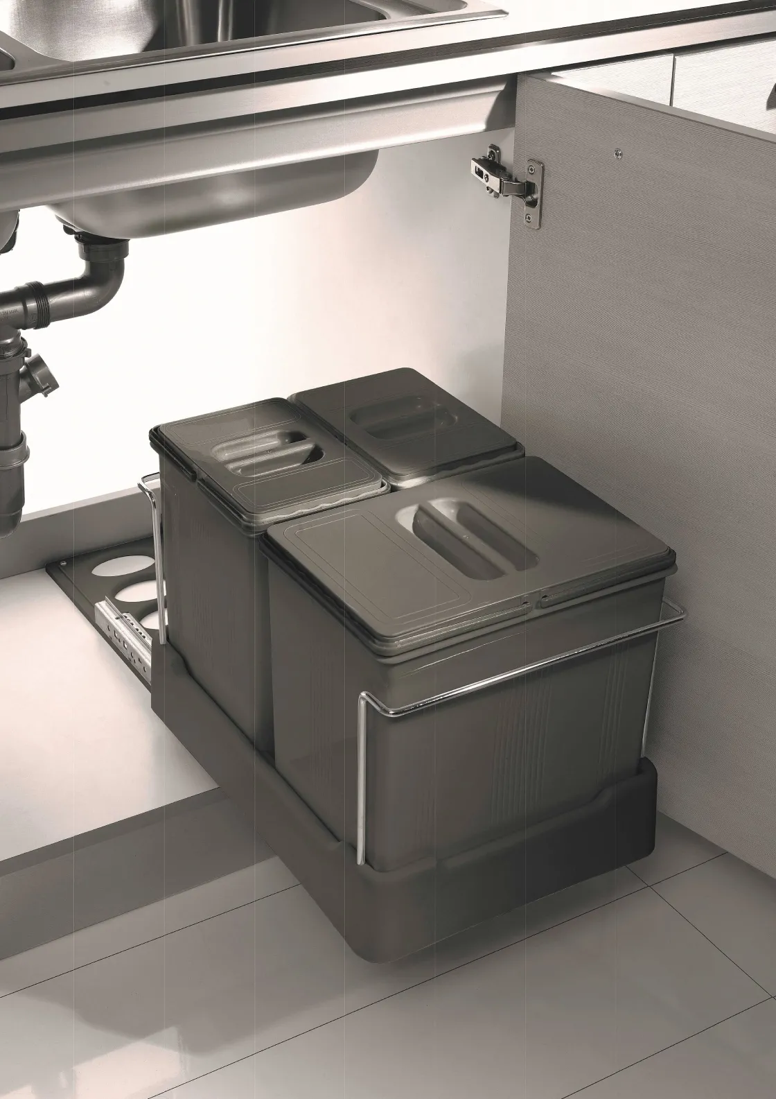 De Uitschuifbare Vuilnisemmer Met Drie Sorteerbakken Heeft Een Inhoud Van 35 Liter. De Vuilnisbak Is Aangepast Aan De Modulo Kasten Zodat Je Eenvoudig Jouw Eigen Keuken Kunt Samenstellen.