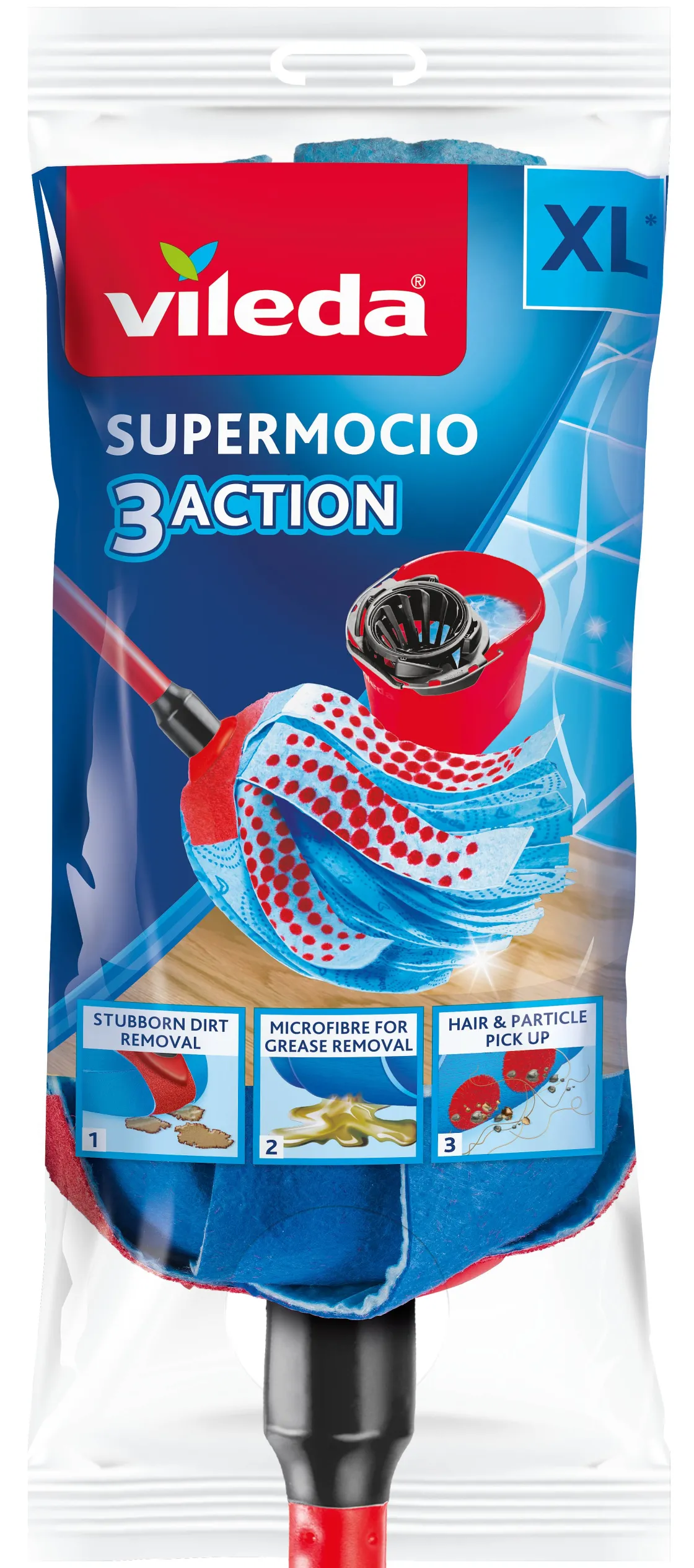 Met De Vileda Mocio Triple Action 3D Krijg Je Zelfs De Hardnekkigste Vlekken Weg. Deze Franjemop Reinigt Je Vloeren Grondig. De Franjes Van Drie Verschillende Materialen Ontvetten, Verwijderen Vlekken, Maken Vuil Los En Vangen Alle Soorten Vezels En Haartjes Op. De Slimme Supermocio 3 Action Laat Dit Vuil Onmiddellijk Los Bij Contact Met Water Tijdens Het Spoelen. Kan Voor Alle Soorten Vloeren, Tegelvloeren En Parket Gebruikt Worden.