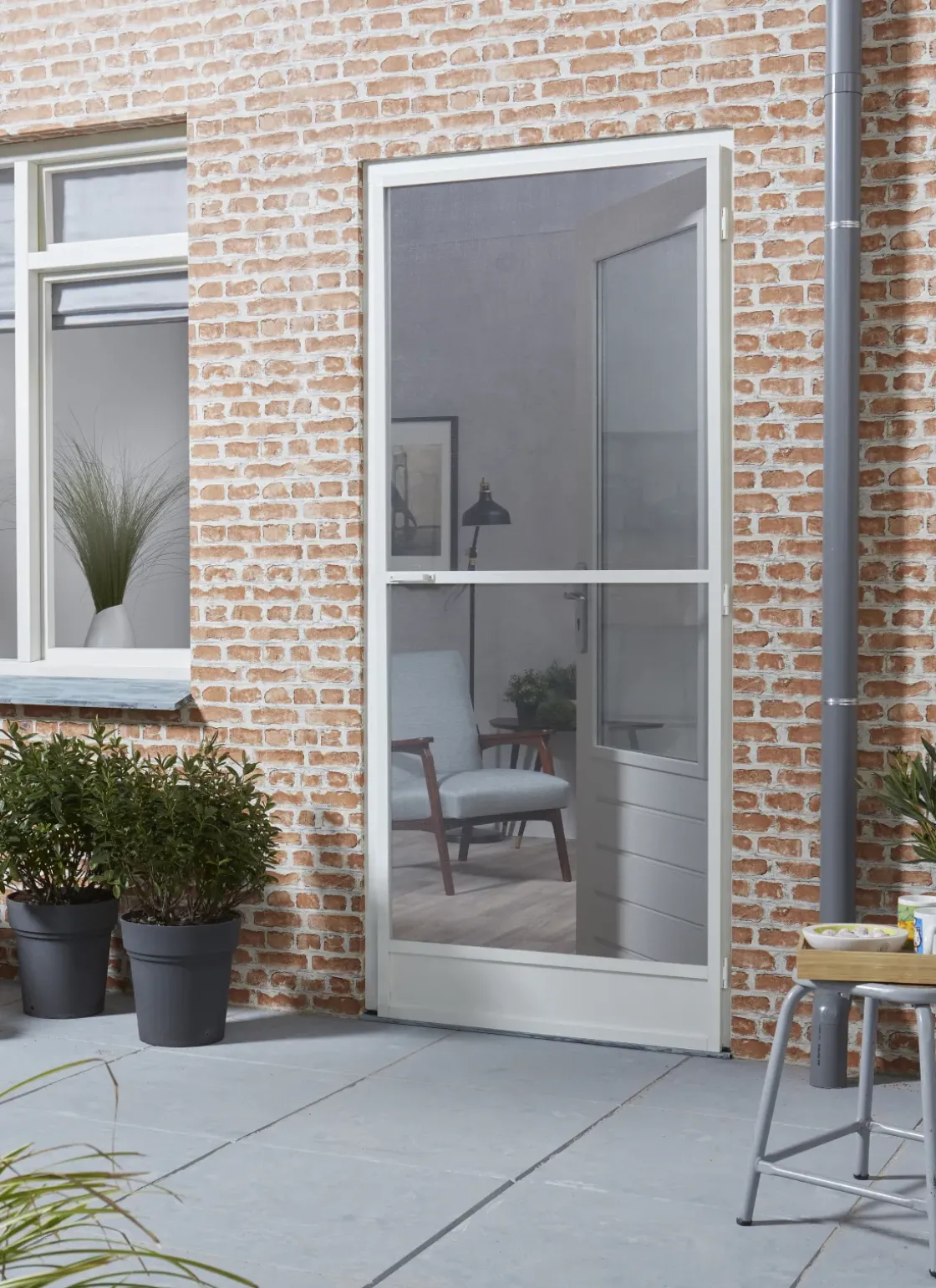 De Cando Vaste Hordeur Comfort (Vliegendeur) Is Geschikt Voor Draaideuren En Kan Zowel Op Als Tussen De Stenen Worden Gemonteerd. Als Je Ervoor Kiest Om Deze Tussen De Stenen Te Plaatsen Is Dit Mogelijk In Combinatie Met Het Cando Inbouwkader Standard. De Vliegendeur Is Geschikt Voor Naar Binnen En Buitendraaiende Deuren Met Een Maximale Maat Van De Kozijnopening Van 100 X 235 Cm.De Vliegendeur Is Eenvoudig Zelf Op Maat Te Maken En Gemakkelijk Te Monteren.De Vaste Vliegendeur Is Voorzien Van Aluminium Profielen Met Een Dikte Van 3 Cm, Een Schopplaat Van 15 Cm En Een Magneetsluiting. De Vliegendeur Is Zowel In Het Wit Als In Antraciet Verkrijgbaar, In Beide Gevallen Is Het Gaas Grijs. Toepassingen• Montage Op Het Kozijn• Mogelijk Te Monteren Tussen De Stenen I.C.M. Inbouwkader Standard• Geschikt Voor Gebruik Binnen En Buitenbeschikbare Kleuren• Wit• Antracieteigenschappen• Volledig Op Maat Te Maken• Stevige Aluminium Profielen Van 3 Cm Dik• Voorzien Van Magneetsluiting• Uitgevoerd Met Schopplaat Van 15 Cm Hoog• Links En Rechts Te Monteren• Gaaskleur Grijs• Pakket Bestaat Uit Losse Onderdelen