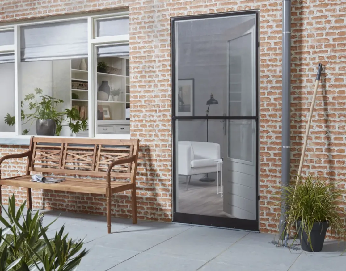 De Cando Standaard Hordeur Is Geschikt Voor Opbouwmontage Van Het Kozijn, Zowel Binnen Als Buiten. Het Vliegengordijn Meet 92X212 Cm. Het Kan Op Het Metselwerk Worden Gemonteerd In Combinatie Met Het Standaard Inbouwframe. Ben Je Op Zoek Naar Andere Raamhorren, Horprofielen Of Muggengaas?