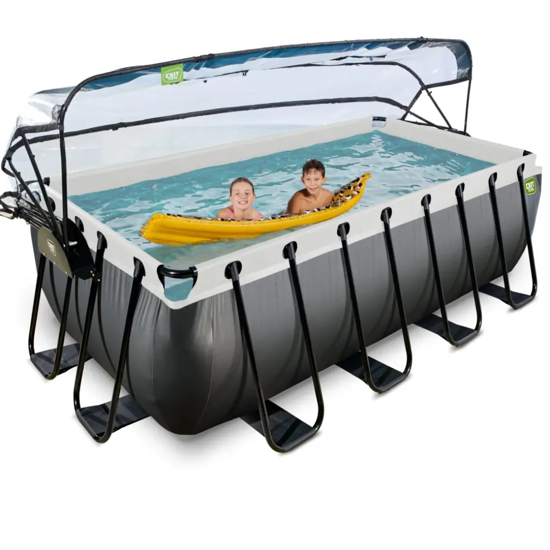 Exit Black Leather Opzetzwembad Met Overkapping En Zandfilter- En Warmtepomp Zwart 400X200X122Cm-Brico Outlet