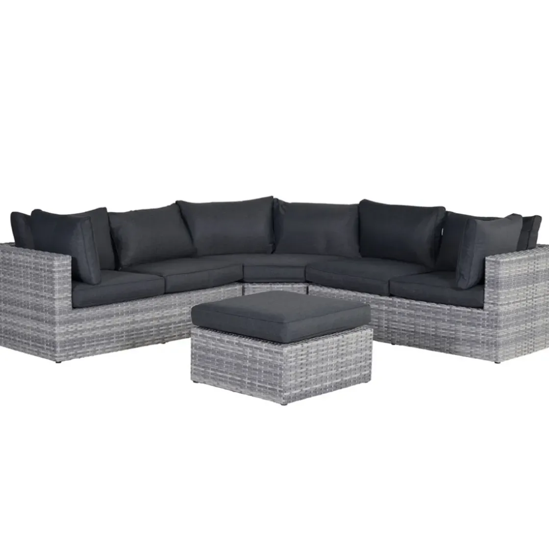 Deze Loungeset Bestaat Uit Vier Elementen: Twee 2-Zitsbanken, Een Ruim Hoekelement En Een Poef/Tafel. De Losse Onderdelen Zijn Aan De Onderkant Gemakkelijk Aan Elkaar Te Bevestigen Door De Meegeleverde Clips. Als Je Nog Meer Ruimte Hebt In De Tuin, Kan Je De Loungeset Nog Uitbreiden Met Een Midden Element Of Een Luxe Lounge Fauteuil.
