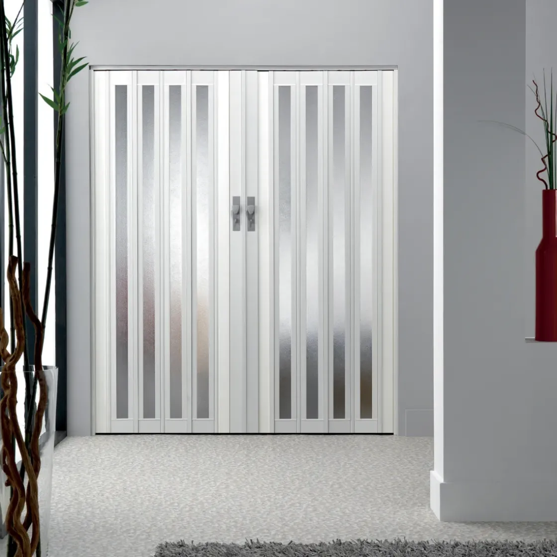 De Glasen Harmonicadeur ‘Larya’Van Grosfillex Is Een Zeer Praktische Deur Uitgerust Met Een Uitbreidbare Vleugel Van 205X84Cm In Wit Pvc. Vouwdeuren Hebben Als Voordeel Om Minder Plaatsruimte Dan Openslaande Deuren Te Nemen.