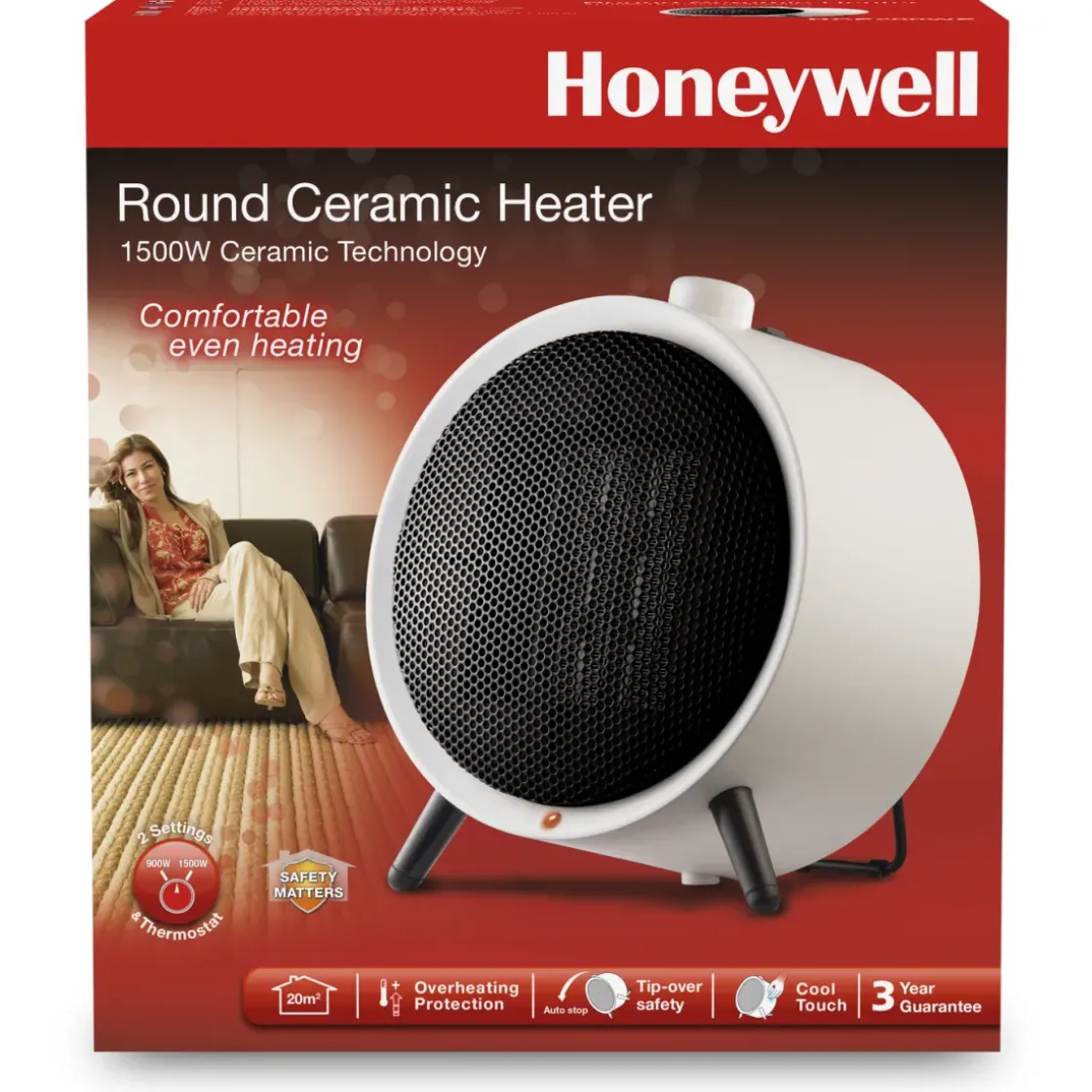 De Hce200We4 In De Kleur Wit Van Honeywell Zorgt Met De Keramische Technologie Voor Een Aangename Constante Verwarming. De Ventilator Is Voorzien Van Een Regelbare Thermostaat En Twee Warmte Standen: 900 Watt En 1500 Watt. De Ventilator Is Beveiligd Met Een Cool Touch Behuizing Waardoor Deze Niet Warm Wordt. Daarnaast Is De Hce200We4 Voorzien Van Een Oververhitting Beveiliging En Een Omvalbeveiliging Waardoor De Ventilator Direct Uitschakelt Als Hij Omvalt.