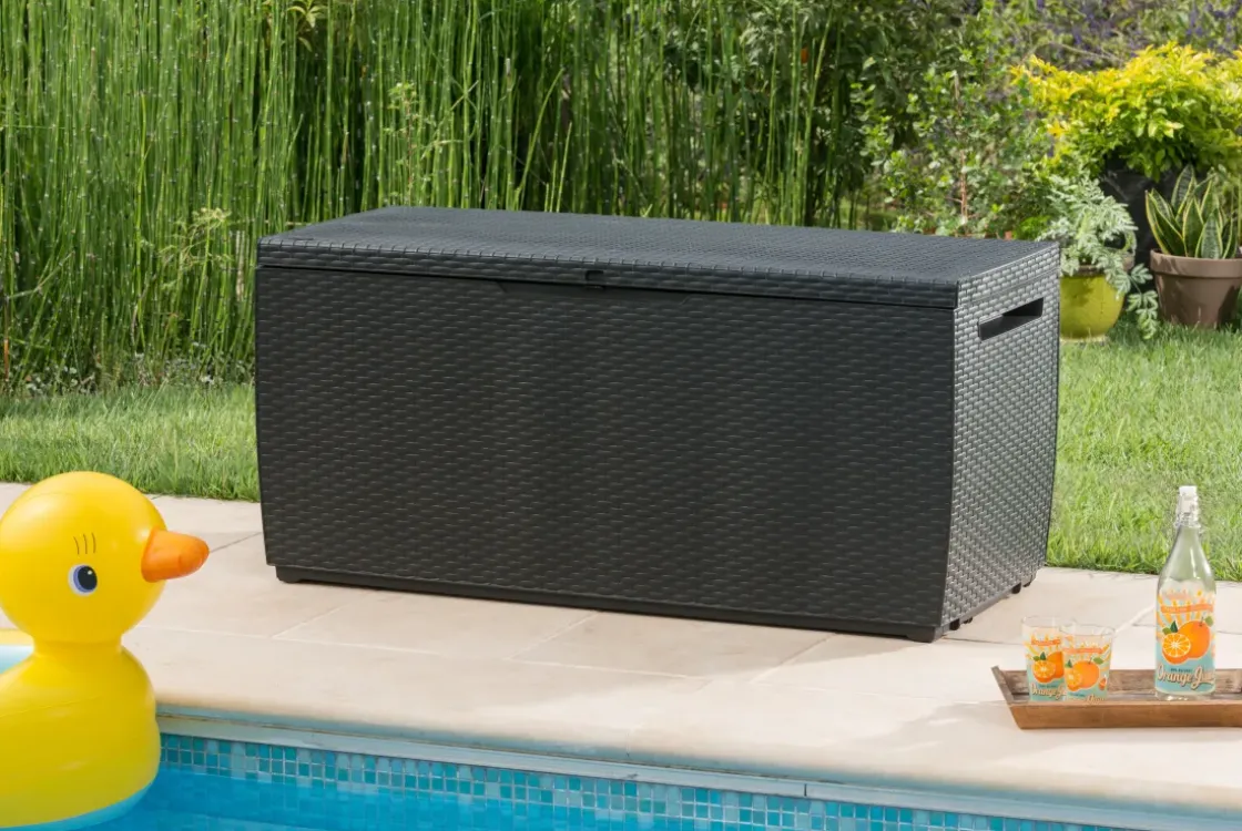 De Tuinkussen Opbergbox Capri Van Keter Met Wickerdesign Is Uitermate Geschikt Voor Je Tuin. Dankzij Het Volume Van 305 Liter Kan Je Met Gemak Je Tuinkussens, Speelgoed Of Andere Spullen Opbergen. De Box Met Modern Rattan Design Is Eenvoudig En Zonder Gereedschap In Elkaar Te Zetten. De Opbergbox Is Vervaardigd Uit Hoogwaardig Kunststof Waardoor Hij Niet Zal Gaan Rotten Of Roesten En Dus Nauwelijks Onderhoud Nodig Heeft. Bovendien Is Deze Opbergbox Weerbestendig.