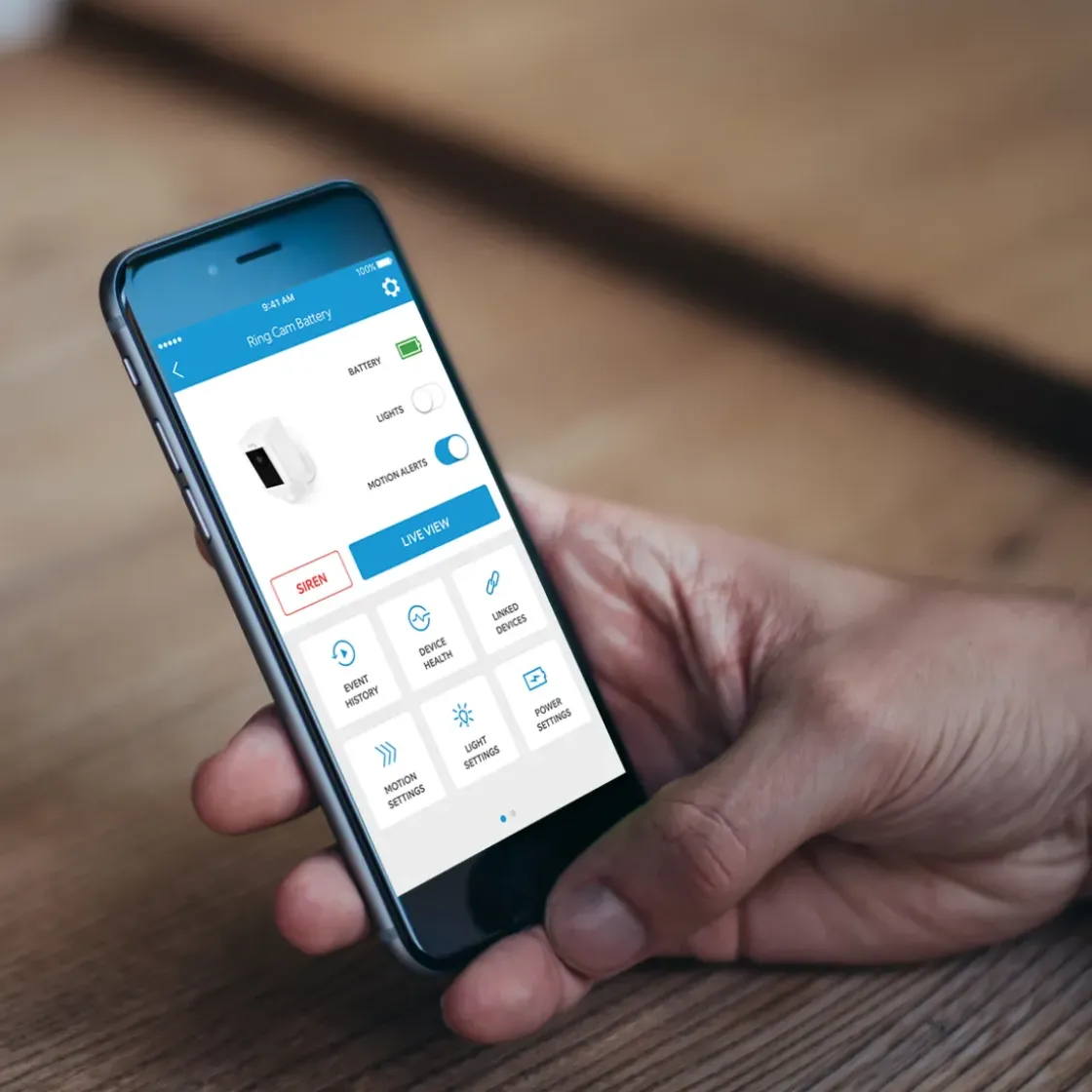 Reageer Waar Je Ook Bent Op De Bewegingsmelding Om Degene Die Zich Op Je Terrein Bevindt Te Zien, Horen En Spreken. Je Kan De Gratis Ring-App Daarnaast Gebruiken Om Op Afstand De Camera, Schijnwerpers En De Sirene Te Activeren.