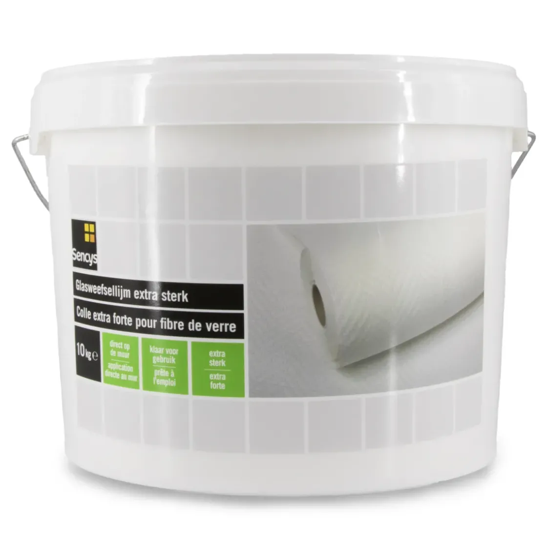 Sencys Glasweefsellijm Extra Sterk Is Een Gebruiksklare Dispersielijm Vooor Verlijmen Van Glasweefselbehang Op Beton, Steen, Gipsplaten En Hout. Ook Geschikt Voor Vlies- En Vinylbehang. Verbruik: 4-6 M²/Kg.