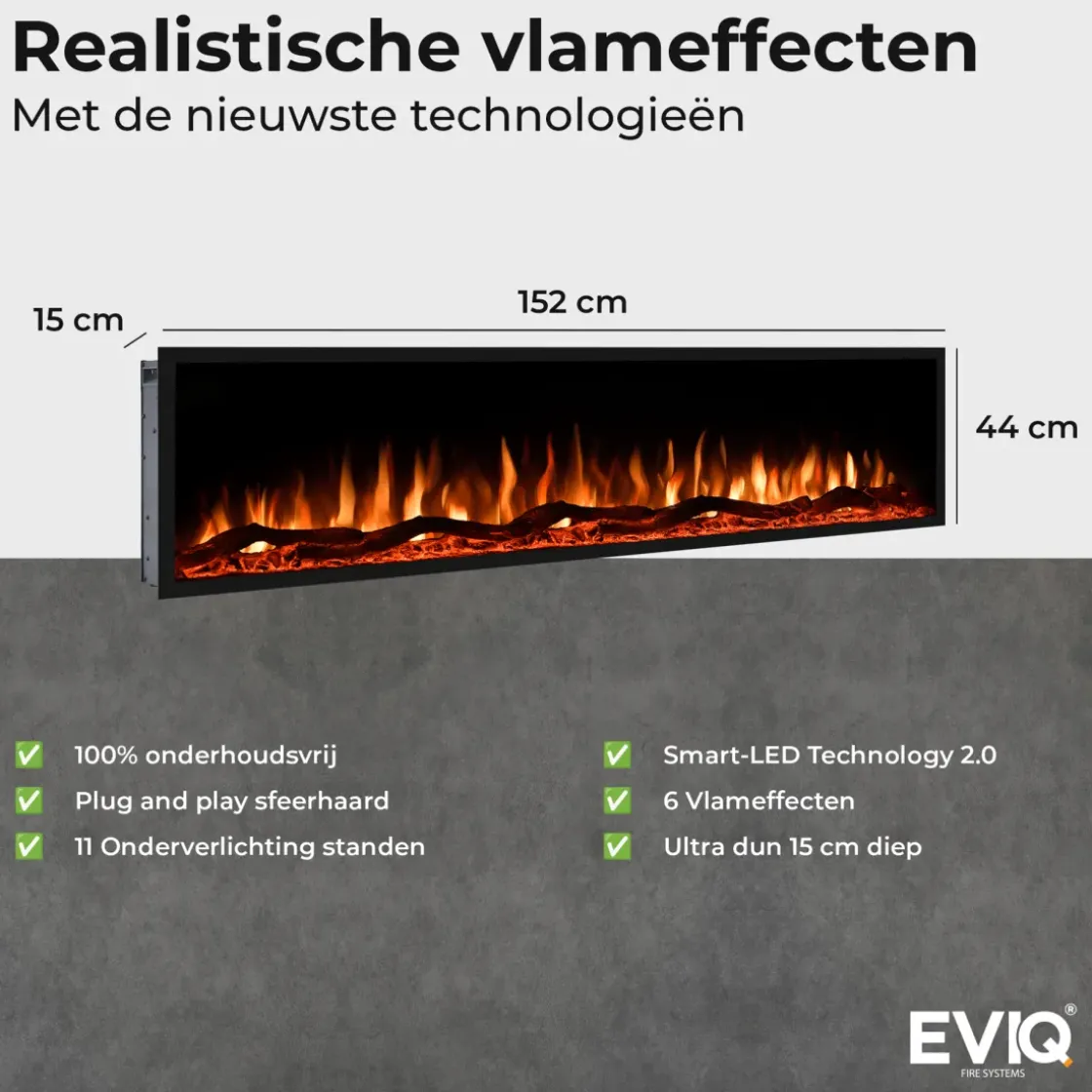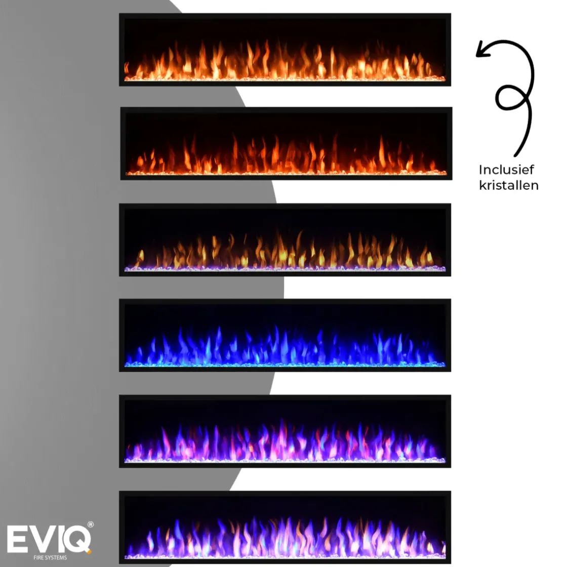 De Elektrische Sfeerhaard. Een Prachtige Elektrische Sfeerhaard Die Vormgegeven Wordt Door Een Dunne Frame Met Levensechte Vlammenbeeld. De Reden Dat Er Zoveel Mensen Kiezen Voor De Eviq Smartline Is Natuurlijk Het Feit Dat Je Deze Elektrische Haard Op Nagenoeg Ieder Mogelijk Plek Neer Kunt Hangen. Bij Een Elektrische Haard Is Het Niet Meer Nodig Om Met Afvoerbuizen Aan De Haal Te Gaan, Hierdoor Kun Je Jouw Ambiance Gewoon Aan De Muur Hangen. De Innovatie In Deze Haard Is Goed Terug Te Zien In Het Feit Dat Je Gebruik Kunt Maken Van De Multi-Color Smart Led Technology (Slt 2.0) En Multi Color Flames (Mcf). Stel De Vlammen In Op De Kleur Die Jij Het Mooist Vindt Voor In Huis. Dankzij De Ruime Hoeveelheid Keuzemogelijkheden Heb Je Hier Zelf De Controle Over. Bij Aankoop Krijg Je Standaard Crystal Ice, Luxe Houtstammen Set En Afstandsbediening.
