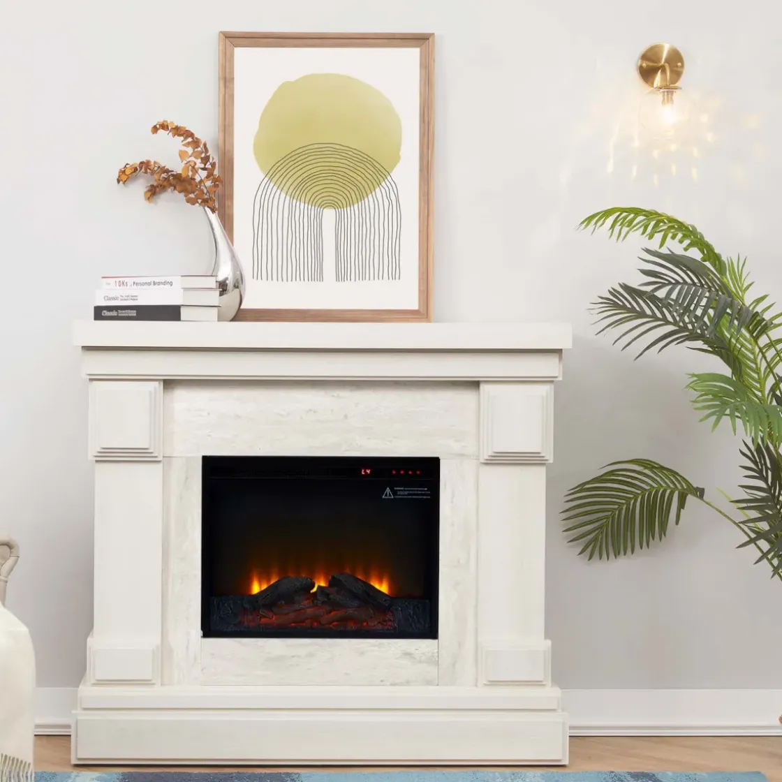 Als Je Warmte En Stijl Wilt Toevoegen Aan Je Interieur, Dan Heeft De Elektrische Haard Hestia Met Marmereffect 48 Inch Van Teamson Home Het Allemaal!