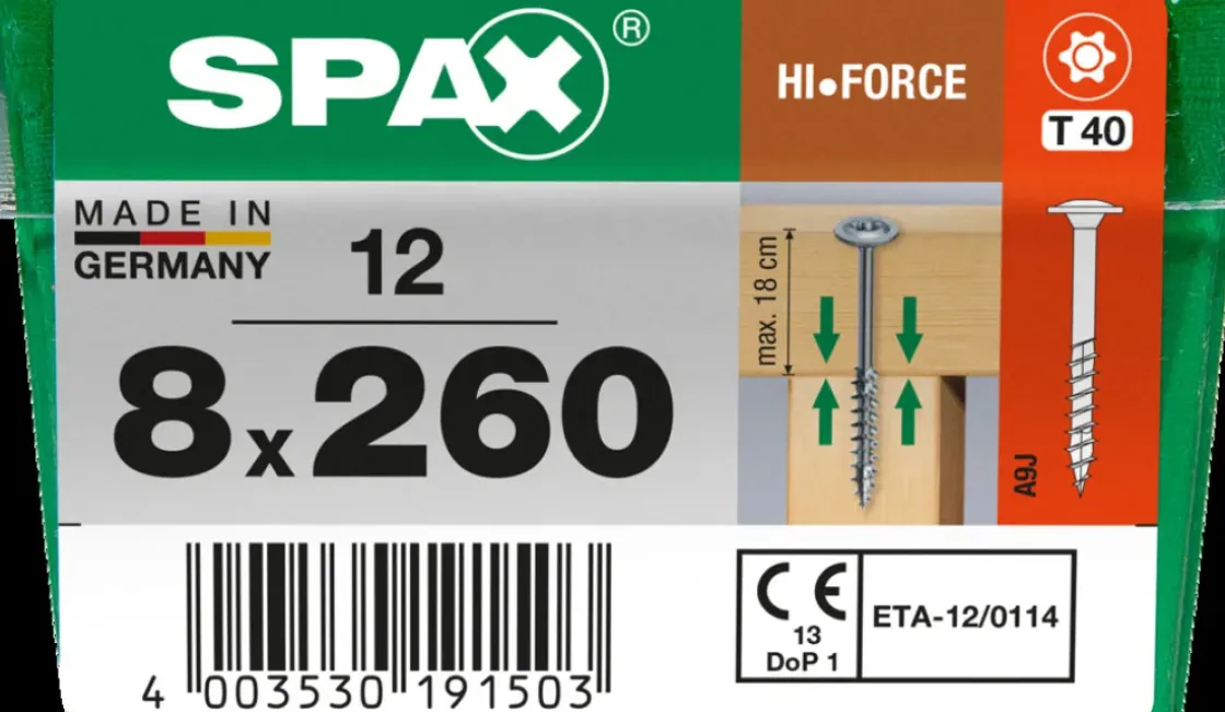 Spax Schroef ‘Hi.Force’ Wirox 8X260Mm 12 Stuks-Brico Clearance