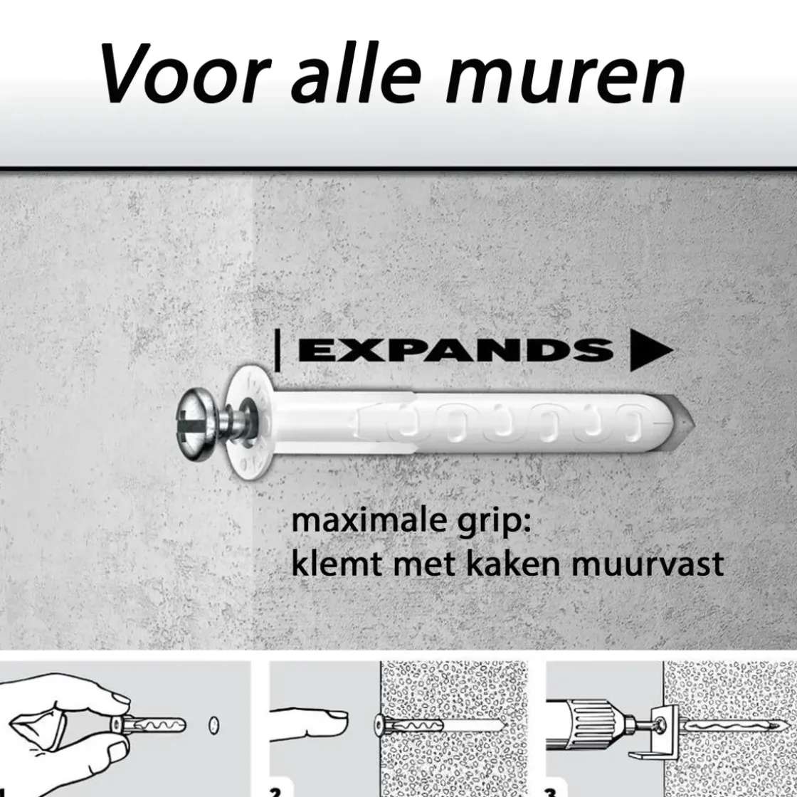 De Toggler Alligator Plug Af6 Met Flens Kan Je Gebruiken Voor Het Bevestigen Van Voorwerpen Aan Holle Wanden, Plafonds En Massieve Muren, Zoals Gipsplaat Met Tegel En Cellenbeton. Met De Alligator Plug Heb Je In Alle Situaties Maximale Grip. Door De Kaken Bijt De Plug Zich Muurvast. Zo Monteer Je Jouw Voorwerpen Veilig En Solide.
