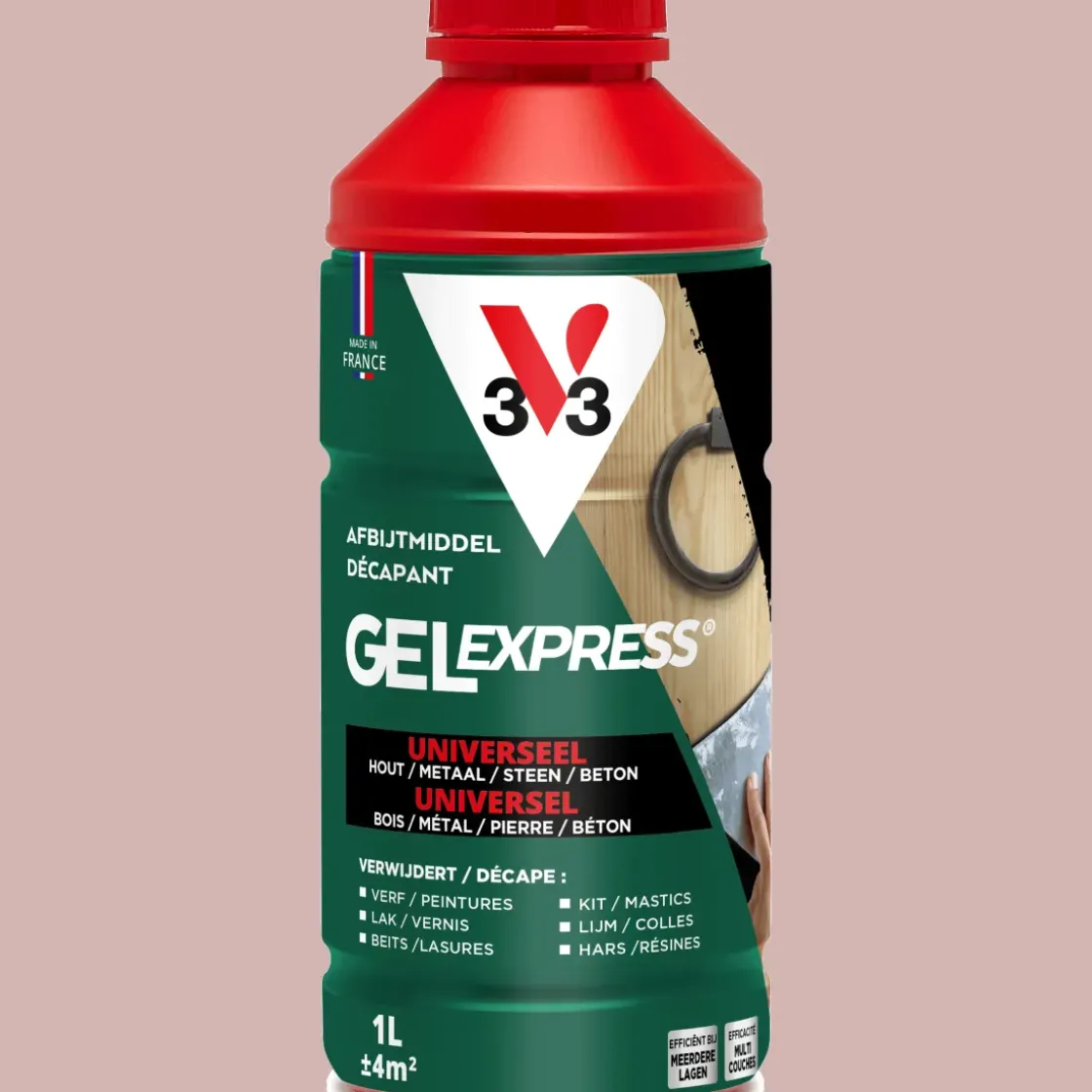 V33 Afbijtmiddel Universeel Is Geschikt Voor Alle Typen Ondergronden, Zoals Hout, Metaal, Cement, Tegels En Glas. Het Verwijdert Alle Filmvormende Afwerklagen Met Uitzondering Van Tweecomponentencoatings En Bepaalde Oude Formules (> 20 Jaar)/ Het Afbijtmiddel Heeft Een Snelle Werking: Het Is Al Na 5 Minuten Effectief En Met Een Behandeling Haal Je Tot 10 Lagen Weg. Dankzij De Geltextuur Druipt Het Product Niet. Je Kunt Het Dus Gemakkelijk Op Verticale Oppervlakken Aanbrengen. Op Een Horizontaal Oppervlak Dringt Het Afbijtmiddel Beter In Het Materiaal.
